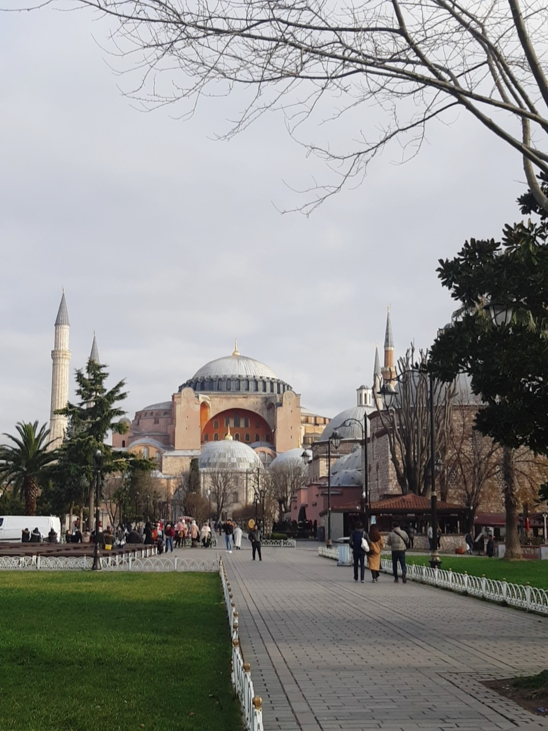 오늘의 마지막 코스는 '아야소피아'이다 워낙 유명한 곳이라 첫날부터 가고 싶었는데 휴관일이라 오늘 가게 되었다 겉모습은 여느 모스크들과 비슷한 형태를 지니고 있었다 입장료는 60리라 한화로 3-4천 원 정도 하였고 유명한 만큼 관광객도 많아 줄 서서 입장을 했다