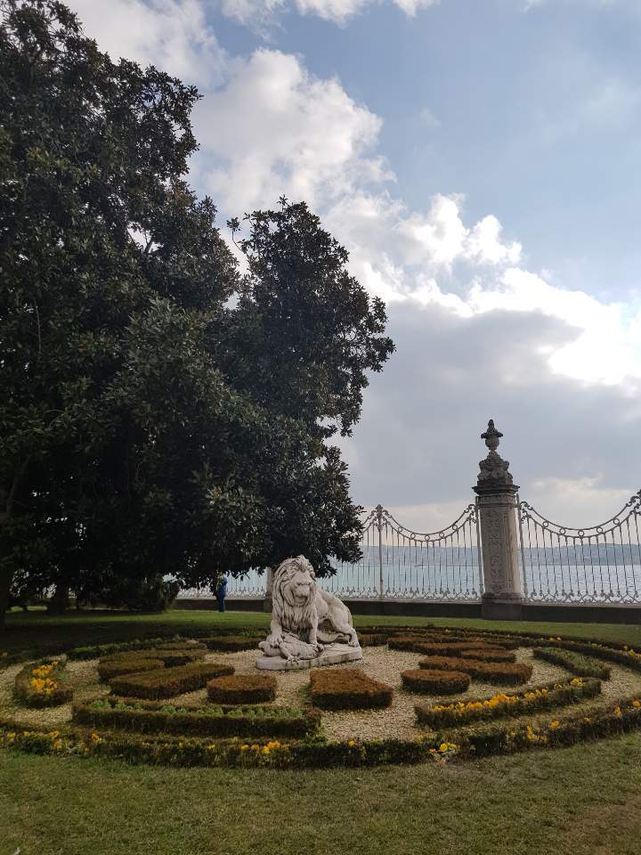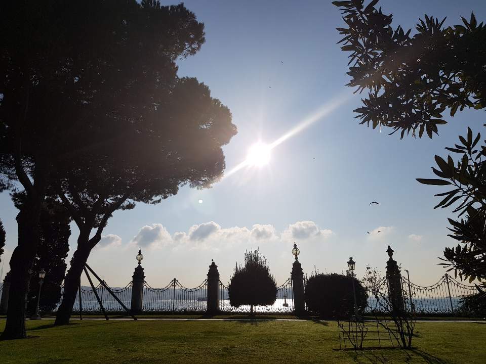 너무 귀여운 학생들을 만나고 정원 깊숙이 들어가 보았다 이 궁전은 바닷가 쪽에 위치해 있어 정원옆이 바로 바다였고 술탄이 배를 타기 위해 만든 정박장도 눈에 보였다 정박장 문 뒤로 햇빛이 비추었는데 화려함이 극대화되어 마치 천국으로 통하는 문처럼 아름다웠었다