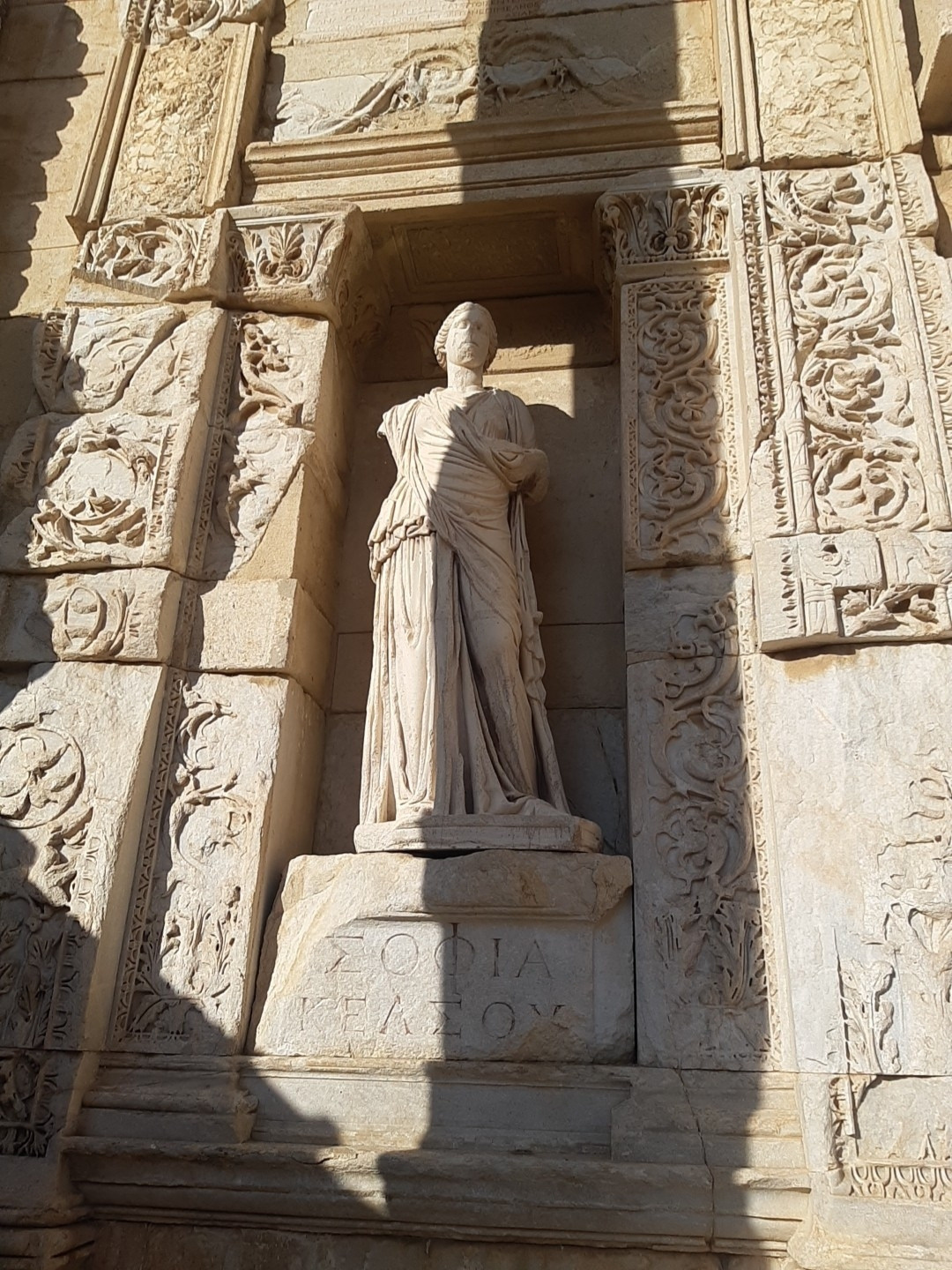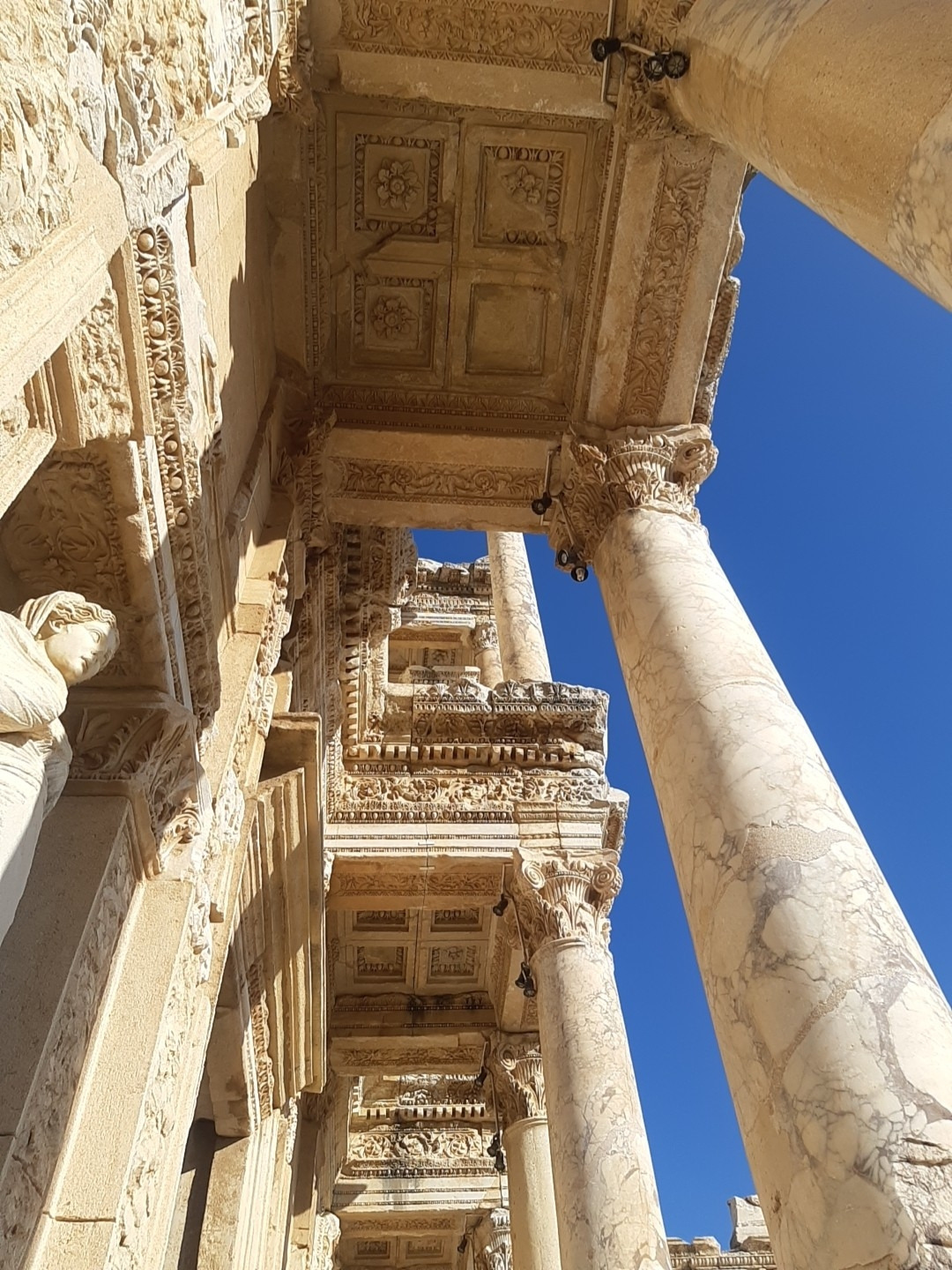 길 따라 이동하니 나온 곳은 켈수스 도서관 유적이었다 도서관의 입구 쪽 구조물이 남아있었는데 개인적으로 여기가 에페소스 유적의 하이라이트라고 생각된다 딱 봐도 그리스-로마 시대가 떠오르며 보존이 너무 잘 되어있었다 관광객분들도 이곳에 많이 머무르며 사진을 많이 찍으셨고 딱 보자마자 와 소리가 나올 정도로 웅장하고 멋있었다