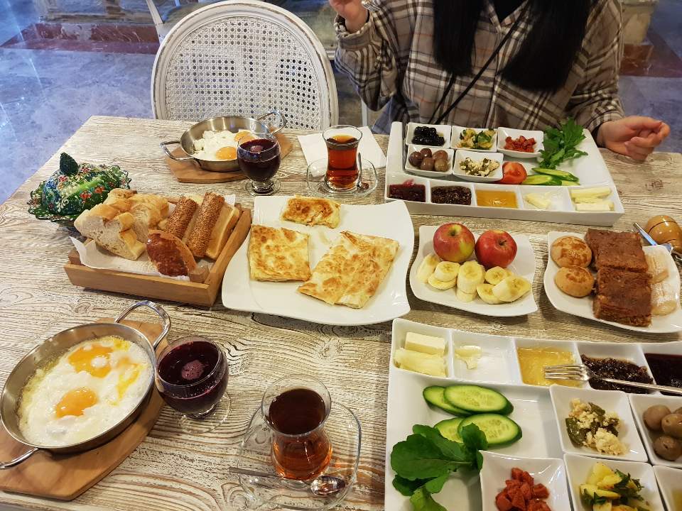 둘이 먹기 버거울 정도로 진수성찬의 음식이 계속 나왔으며 투숙객이 둘 뿐이라 더 잘 챙겨주셨다 다양한 음식을 많이 먹을 수 있어 좋았는데 그럼에도 카이막을 잊지 못해 나름대로 비슷한 맛을 낼 수 있는 꿀과 버터를 섞어 빵에 발라먹기도 했다