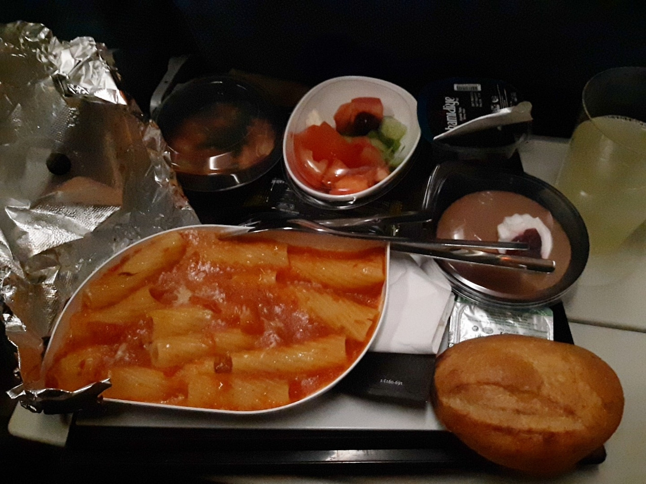 이륙 후 잠시 뒤 바로 기내식과 어메니티가 나왔다