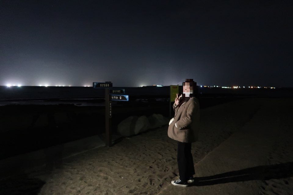 주변에 바다도 있어서 숙소로 가기 전에 잠시 들리기로 했다 바닷바람이 차가워 단체로 구매한 귀도리를 모두가 쓰고 어둠이 내려앉아 보이지도 않는 바다가 예쁘다며 웃기도 했다