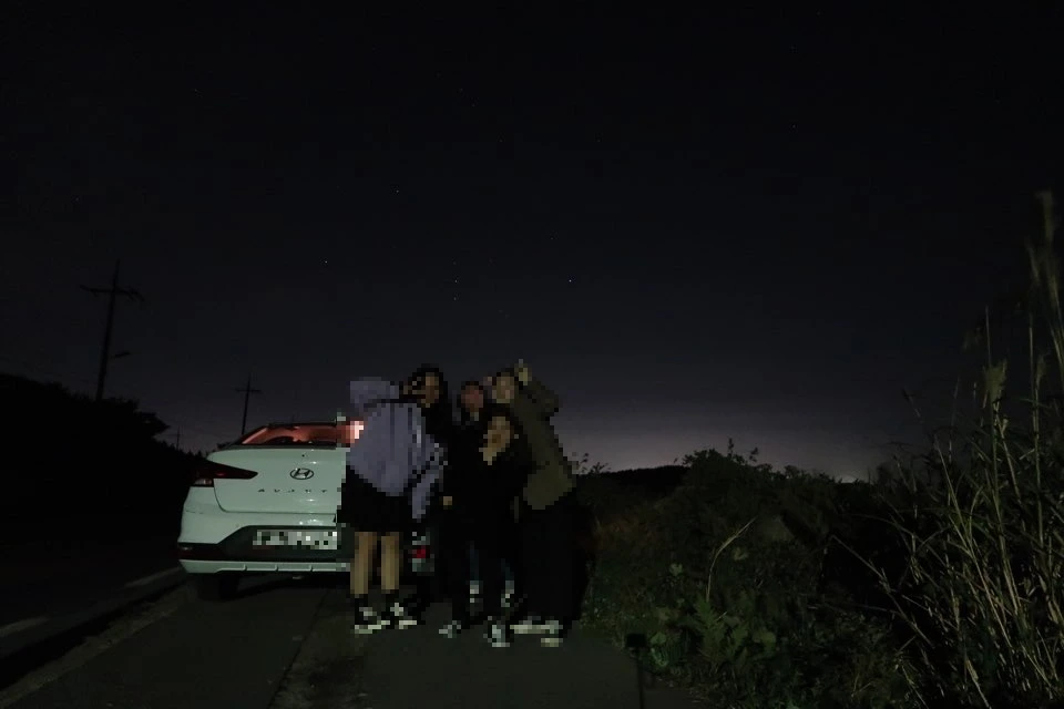 이제는 숙소로 향할 시간. 평소 익숙한 도심에서 벗어나 어두운 길을 따라가다 보니 하늘에 무수히 많은 별들이 눈에 보였다 지나가는 차도 우리뿐이었기에 잠시 차를 갓길에 세워두고 천천히 별을 구경해 보았다
