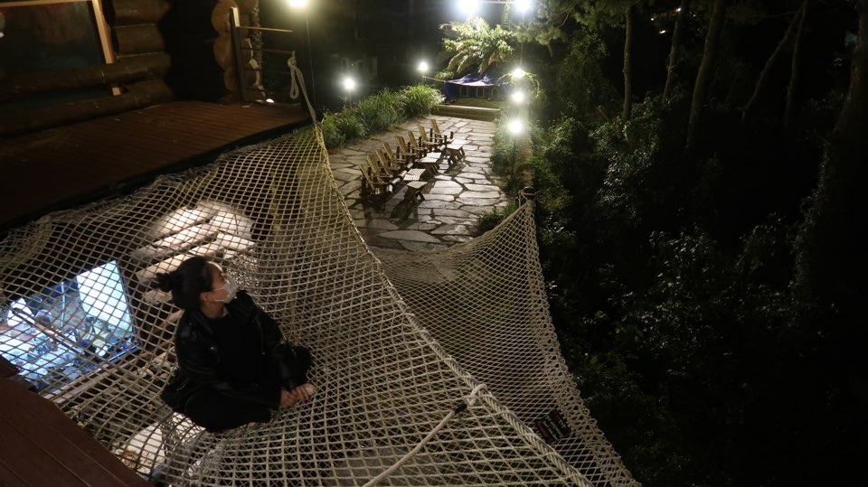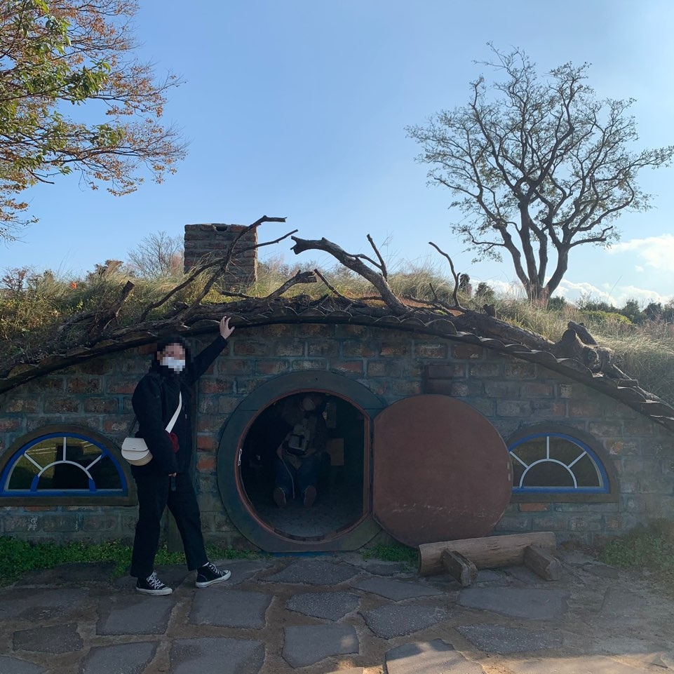 이번 여행코스는 친구 중 한 명이 여름에 제주도에 왔던 코스를 그대로 같이 가고 싶다고 해서 다니고 있었다 햄버거를 먹어 배부르지만 예쁜 카페가 있다며 꼭 가야 된다고 코스 안에 있어 간 곳에는 공중에 달려있는 해먹도 있었고 카페가 통나무로 지어진 산장 같은 느낌의 예쁜 카페였다 해가 져 쌀쌀해진 날씨에 몸을 녹이며 오늘 하루 동안 찍은 사진들을 같이 보면서 시간을 보냈다