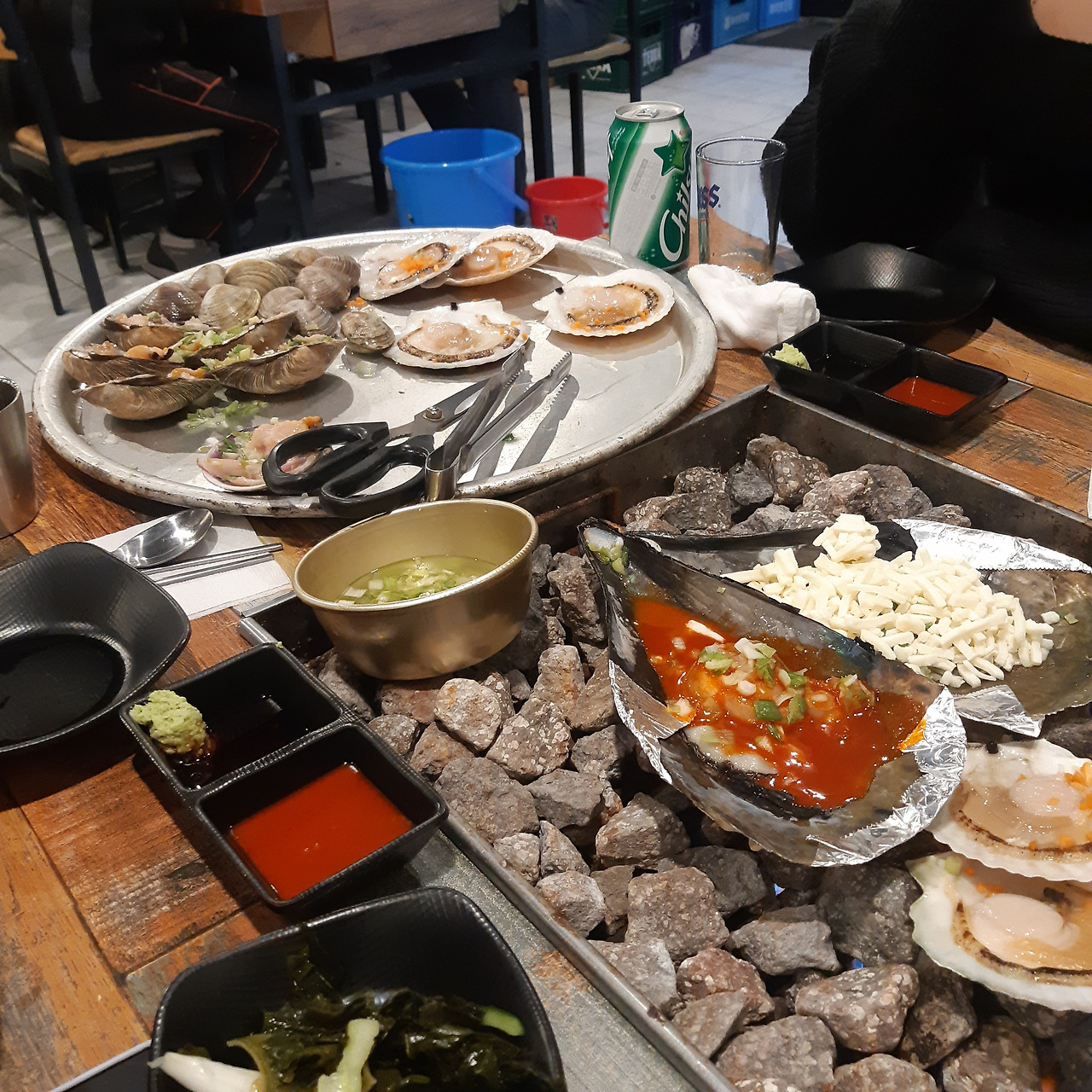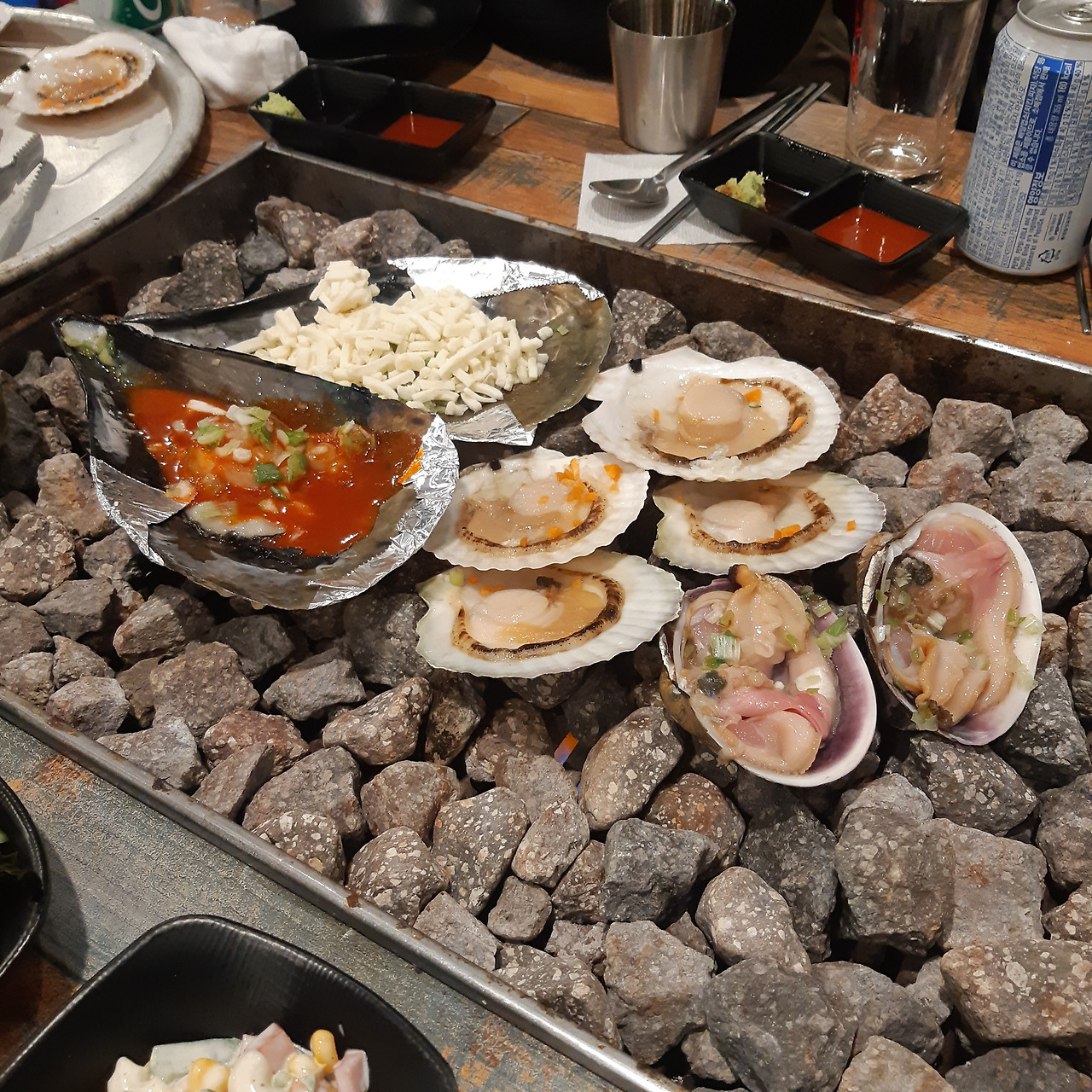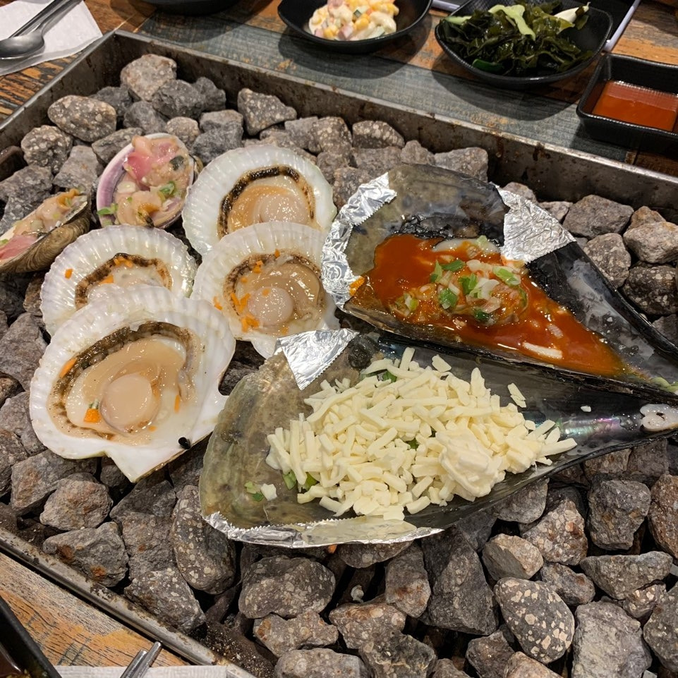 체크인을 하고 2차 저녁을 먹으러 갔다 제주도까지 왔으니 조개구이를 먹자며 조개구이 집으로 갔는데 진짜 맛이 너무 일품이었다