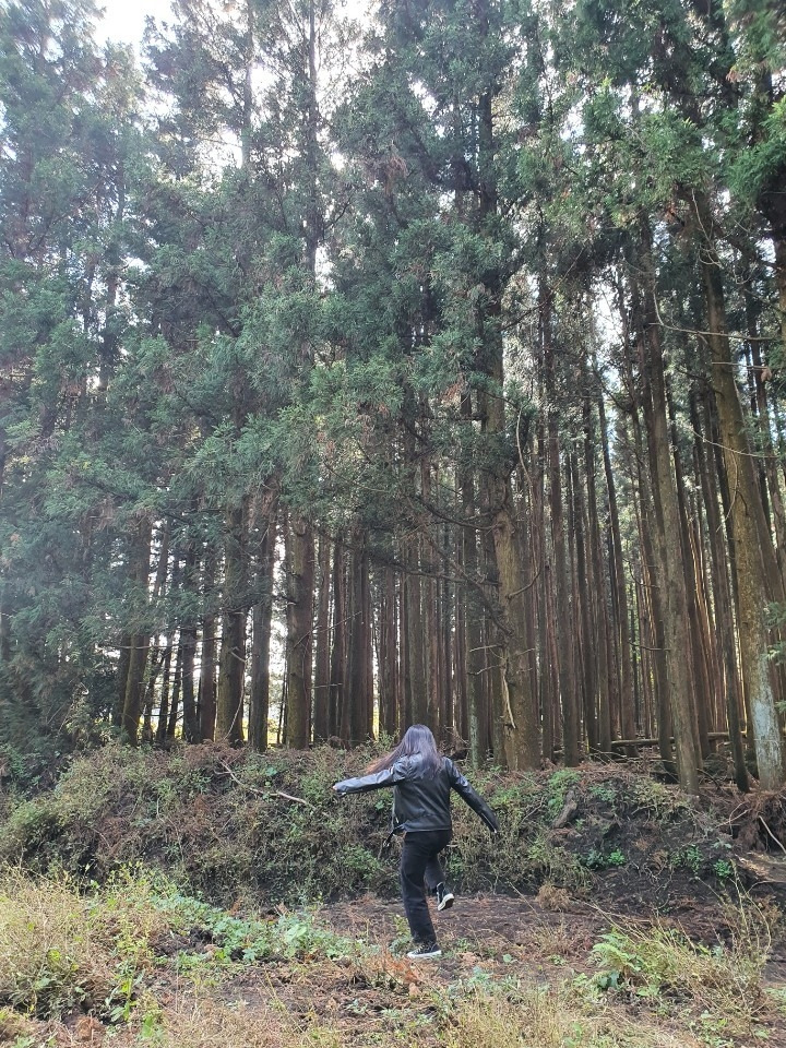 주변 숲도 너무 멋져서 사진 찍을 위치를 잡고 넷이 돌아가며 사진을 찍었다 가을이지만 이곳 숲은 아직도 초록초록했고 숲향도 너무 좋았다