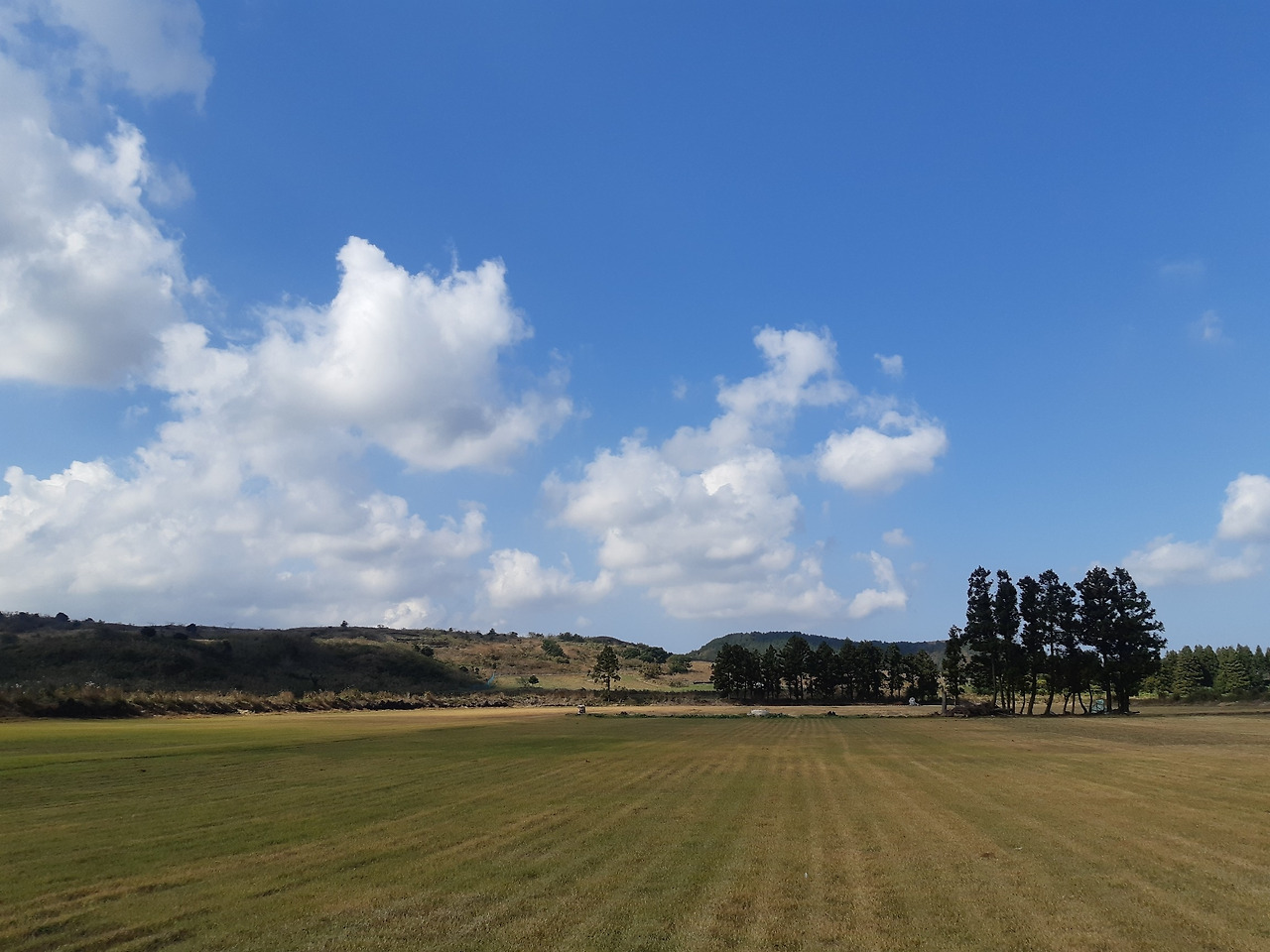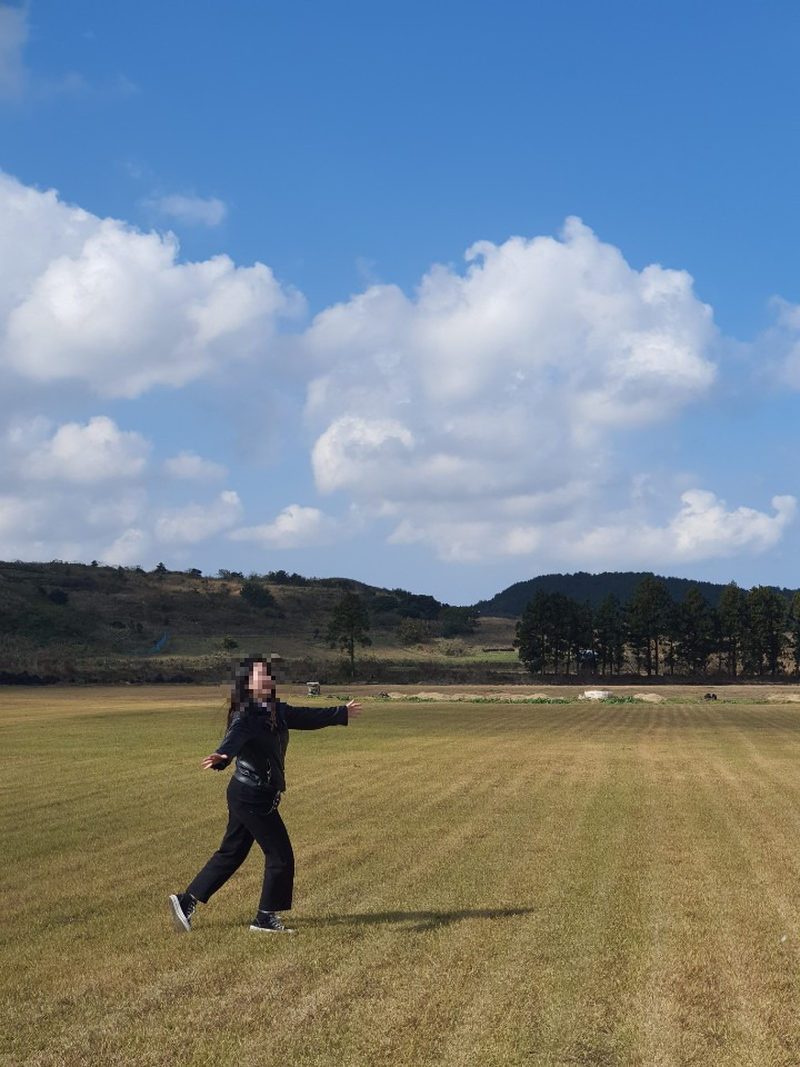 그렇게 처음으로 보러 간 곳은 오름이었다 유명한 오름이 있는데 그 옆으로 가면 사람도 없고 넓은 평야가 펼쳐져 있었다 게다가 날씨도 맑고 춥지도 않아서 모든 조합이 완벽 그 자체였다