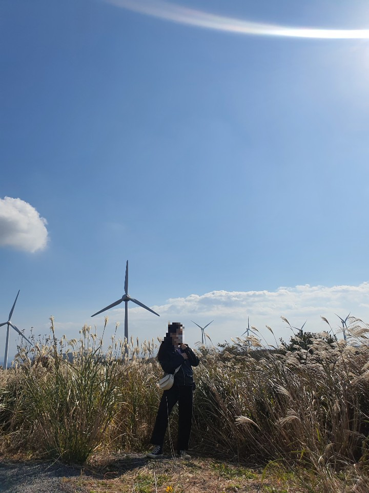 다음으로 이동한 장소에서도 포토타임은 계속되었다 근처 카페에 갔는데 간단하게 몸도 녹이고 잠시 쉬는 시간을 가지기에 너무 좋았다 게다가 옆쪽에 저 끝까지 탁 트인 갈대밭과 풍력발전 프로펠러가 계속 돌아가는데 한없이 그 풍경을 바라보니 그동안 일을 하다가 지쳤던 마음들이 평화로워졌다