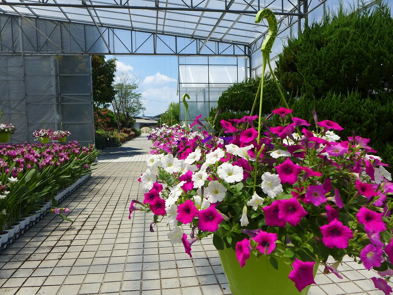 입구에 들어서니 일렬로 늘어진 꽃들이 나를 반겨주었다.