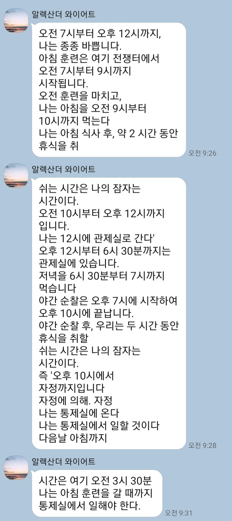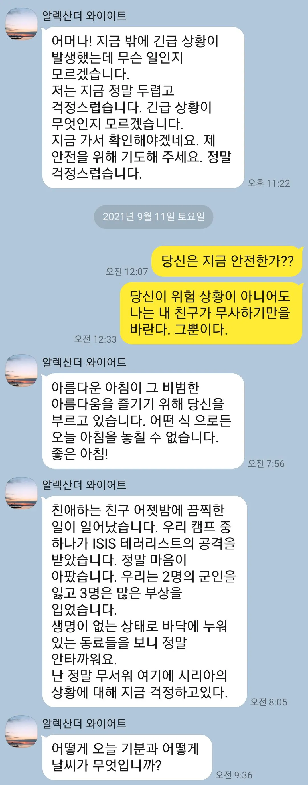 1. 테러가 일어난 와중에 군인이 카톡을 보냈다?