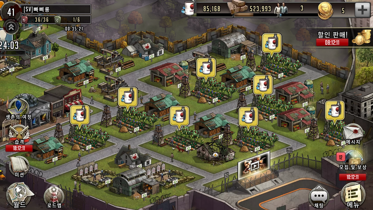 그러면 그냥 저 상태로도 게임을 즐기면 되지 않을까도 싶지만 스테이지 깨는 것 외에도 '습격'이라는 시스템이 있어 게임 유저끼리 서로 공격할 수가 있는데 덱등급이 낮으면 털리기 쉬울 뿐더러 식량도...자재도...많이 털리게 된다.