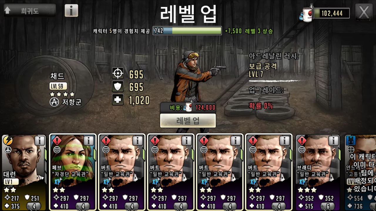 여느 게임이 그렇듯이 플레이를 원활하게 하기 위해서는 보다 높은 등급의 캐릭터가 있어야 한다. 스테이지를 진행할수록 나오는 좀비와 사람들의 레벨도 높아지기 때문이다. WD에는 레벨을 제일 많이 올릴 수 있는 캐릭터 등급이 별 5개다. 그리고 그 밑으로 별 4~1개의 캐릭터가 있는데 3이하로는 취급도 안하기때문에 거의 무조건 별 5개 캐릭터가 있어햐 한다고 해도 과언이 아니다.