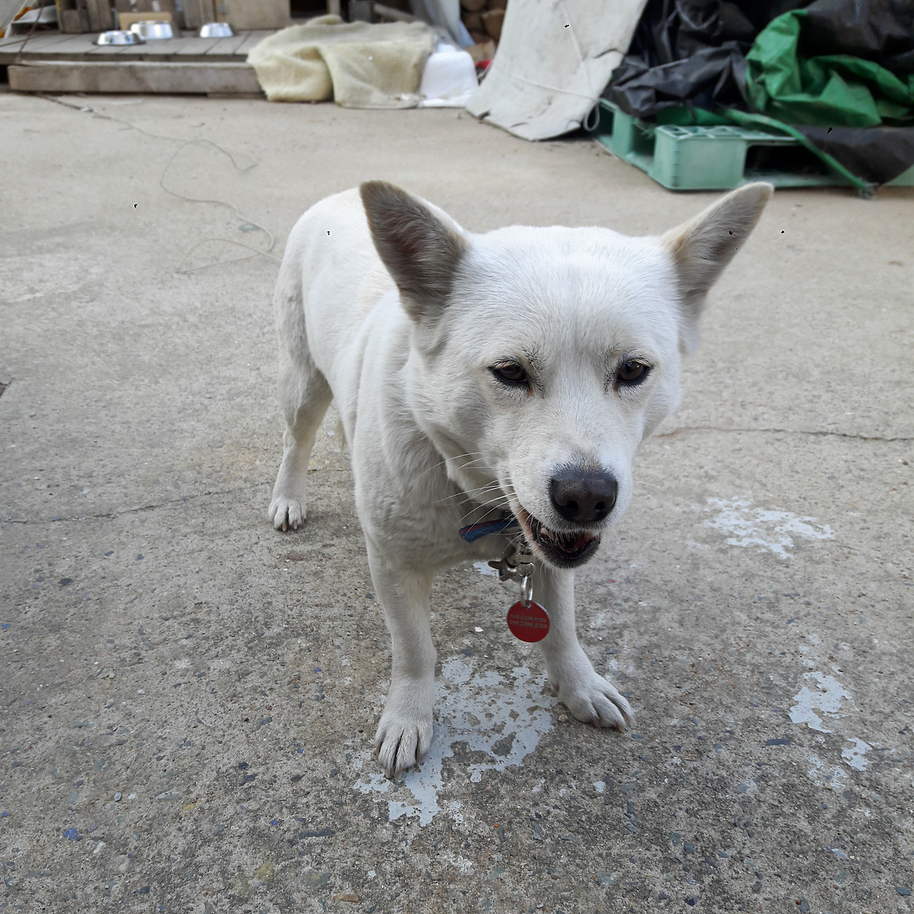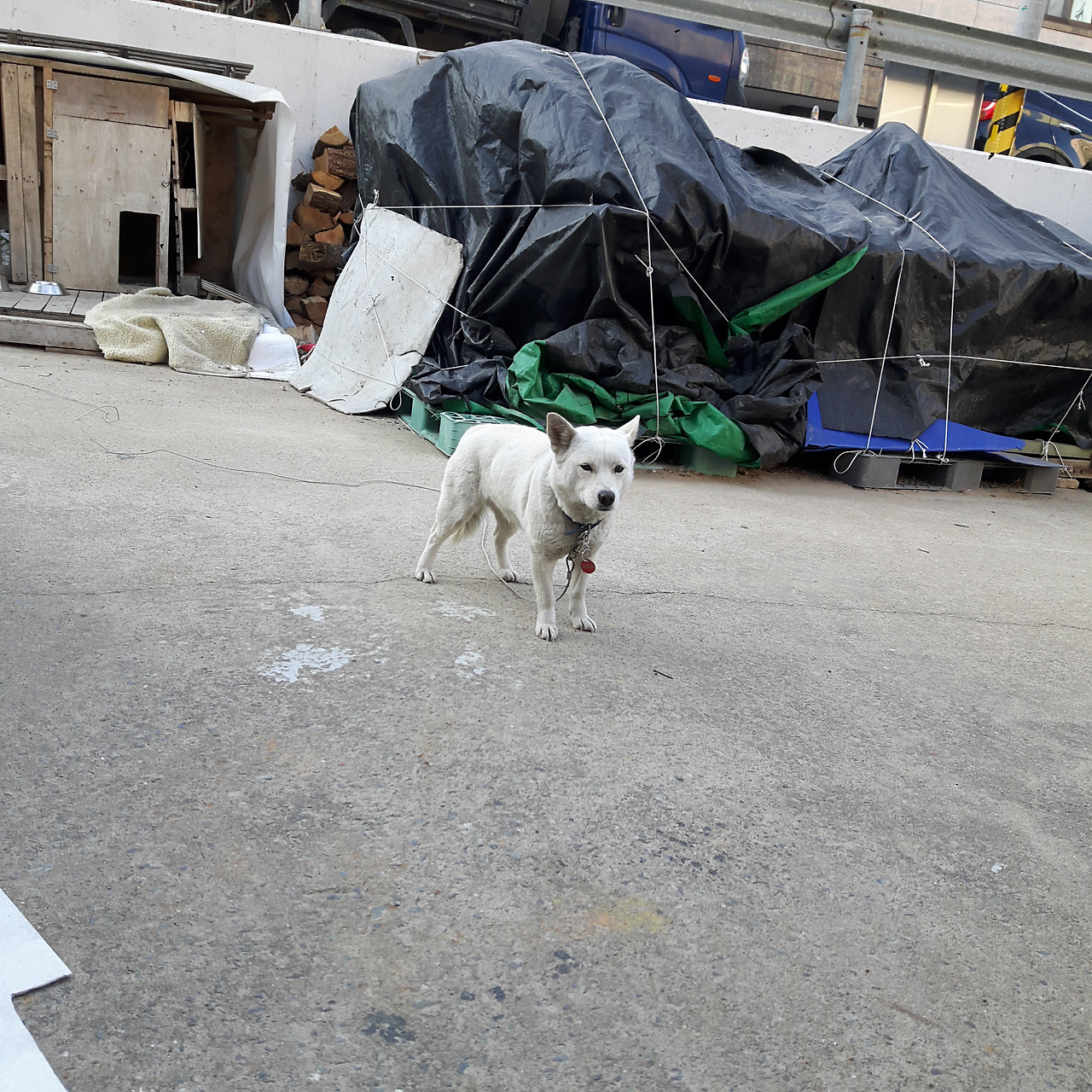 소금이. 하얘서 소금이인가 싶은데 이름에 맞게 성격도 짜다. 다가가면 짖고 먹을 것을 줘도 계속 짓다가 뒤돌아 서있거나 안보이는 곳에 있어야 간식을 먹는다. 작은 고추가 맵다더니 작은 강아지가 매섭게 짖는다.