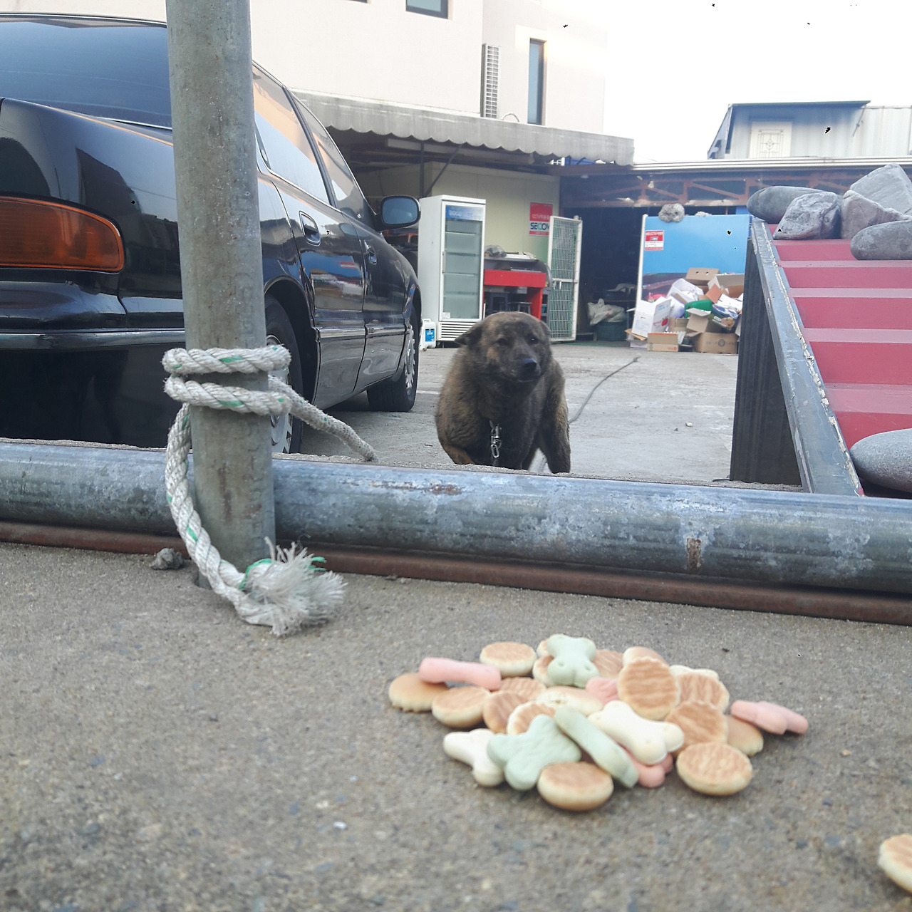 주변만해도 거의 4집 정도가 개를 키운다. 풀어놓고 키우는 집도 있고 묶어 놓고 키우는 집도 있다. 그래서 언제든 그들을 반기기위해 개전용 간식을 사서 들고 다니는 편이다. 요즘은 마트에 개전용 간식이 소포장으로 잘 나와있어 번거롭게 먹던 것을 주지 않아도 된다.(물론 줄 생각도 없지만.) 캔보단 여러 번 나눠줄 수 있는 육포나 비스킷을 선호하는 편이다.