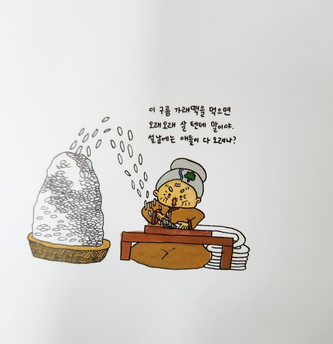 책을 통해 하늘, 땅, 사람이 하나이고 널리 사람을 이롭게 하라는 단군 신화의 마음까지도 엿볼 수 있다. 마지막장까지 웃게 만드는 한 컷. 설날에도 떡국을 만들어 동물들 먹일 생각을 하시는 손도 크고 마음도 큰 마씨 할머니. 이 지구에서 가래떡 먹고 오래오래 평화롭게 살아가면 좋겠네.