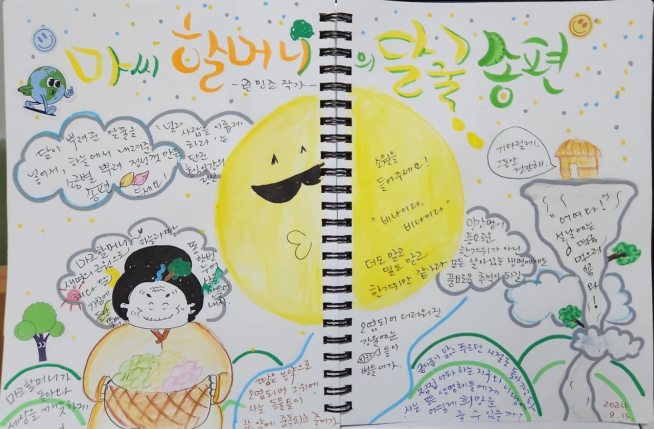 추석에도 읽으면 좋을 <마씨 할머니의 달꿀 송편>. 환경 관련 그림책으로도 손색없는 책이니 보름달이 지기 전까지 송편 빚으며 한 권 뚝 딱 드셔보시길! 보름달이 진 후에라도 환경에 관련된 이야기로 두고 두고 나눠 보시길 추천해 본다.