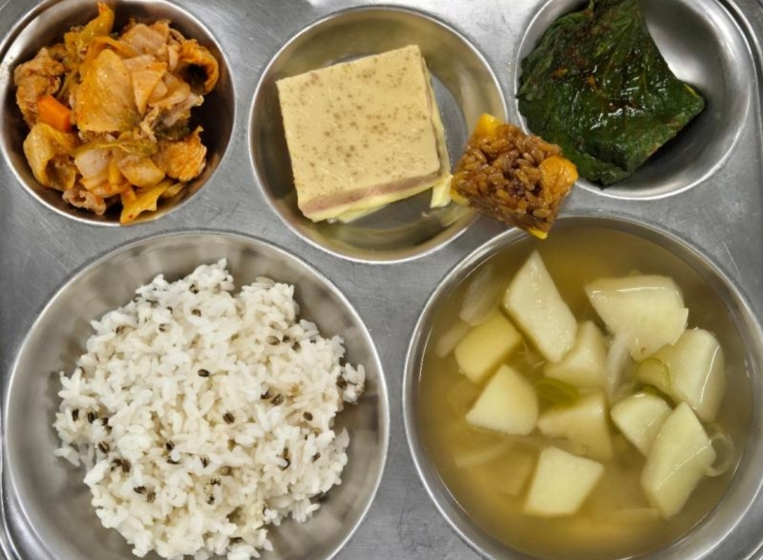 내 식탁에 담긴 것은 검정보리쌀밥, 감자국, 이색계란찜, 돈육김치볶음, 깻잎김치, 야식...이 아니라 '약식'