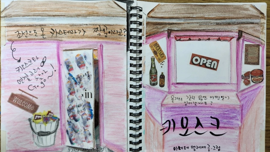 짝꿍책으로 키오스크를 떠올렸던 이유는 올가미에 걸린 듯 빠져나오지 못하고 힘든 삶에서 벗어나고 싶어하는 다미를 떠올렸기 때문이에요.