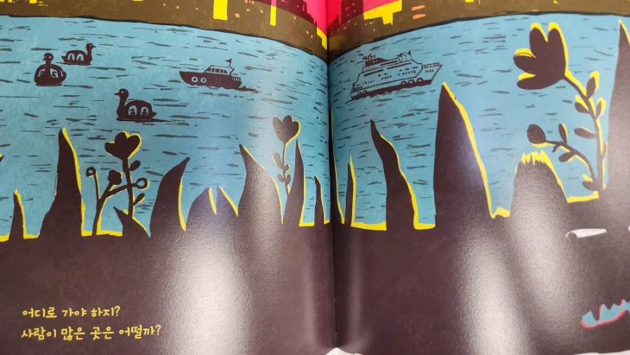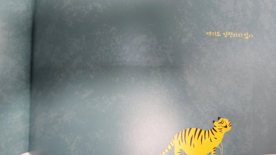 작가님의 상상에 귀여운 미소를 잠시 짓지만 그뿐입니다. 잠시일 뿐이에요. 호랑이에겐 너무 마음 아픈 일이거든요. 전쟁으로 삶의 터전을 떠나 국경을 넘어야 하는 이들도 떠오르고 살아남기 위해 죽을 힘을 다해 물을 건너고 몰래 넘어가는 이들의 삶이 그려지기도 했습니다.