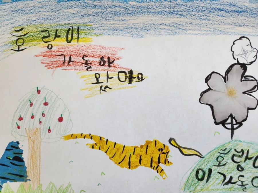 <호랑이가 돌아왔다>를 읽으며 또 그림책에 흠뻑 빠지게 되었어요. 아이들과도 즐겁게 읽으며 이야깃거리가 많았어요. 환경, 동물권, 동물 복지, 생명 존중 등 어디에 초점을 두는지에 따라 아이들과 할 수 있는 활동은 다양해진답니다.