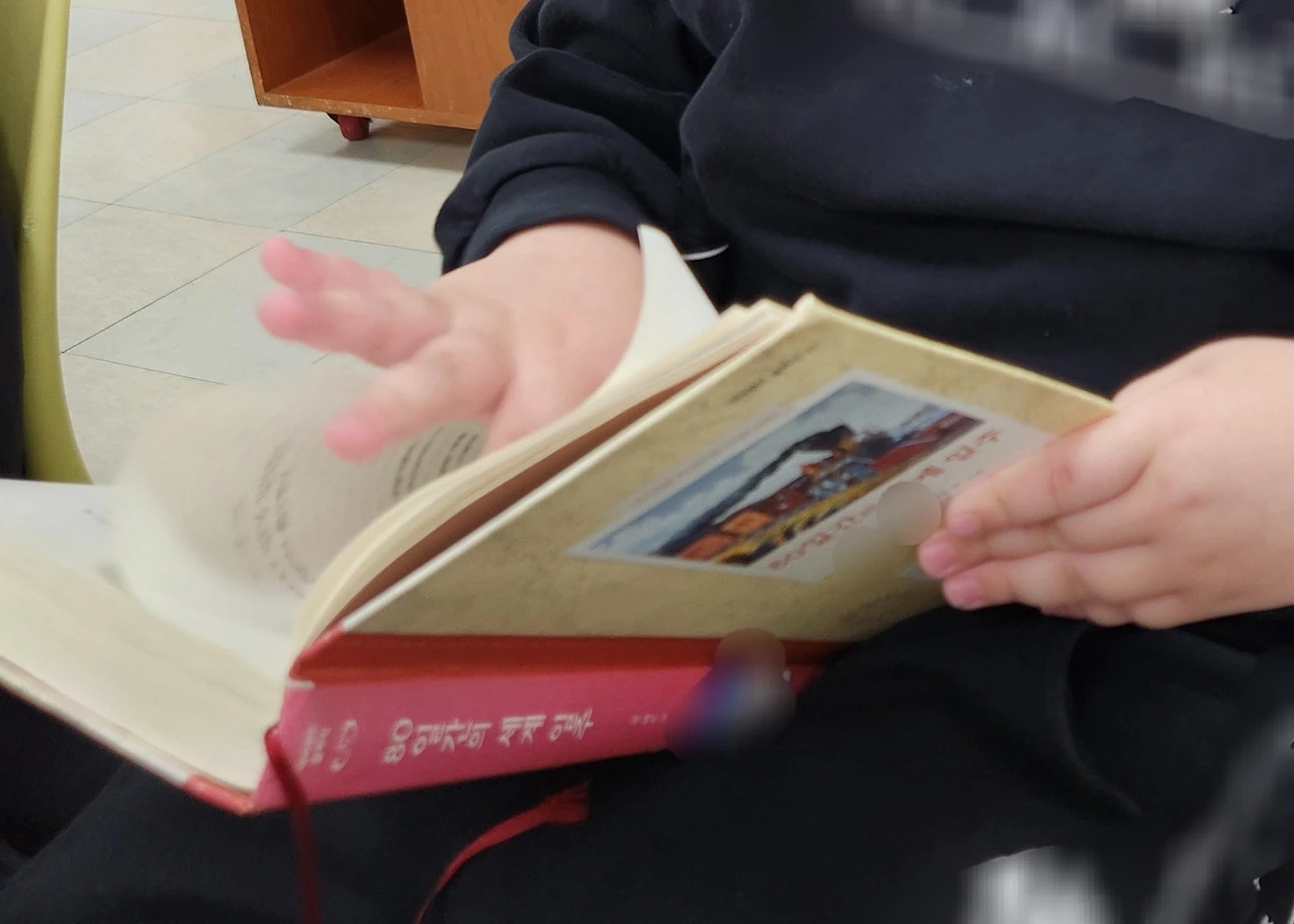 "준아, 책 읽는 수준이 너무 높은데? 재밌어?"