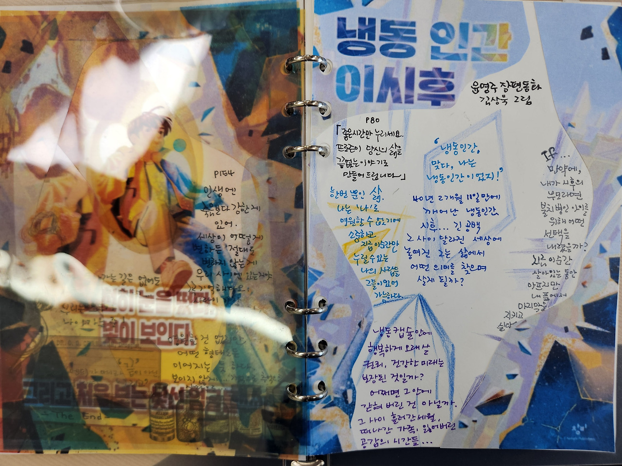 이번 다꾸는 책을 읽고 생각처럼 표현하기란 얼마나 어려웠는지 생각하느라 시간이 오래 걸렸다. OHP 필름으로 켜켜이 쌓인 얼음, 그 얼음처럼 차가운 현실 앞에서 하나씩 녹아가면서 시후의 밝고 노란 세상이 열리는 세계를 표현하려고 했다는 것을 남겨두기로 한다. 나의 표현력으로는 제대로 나타낼 수 없었음을 아쉬움을 뒤로하며 다음의 다꾸를 기대하기로.