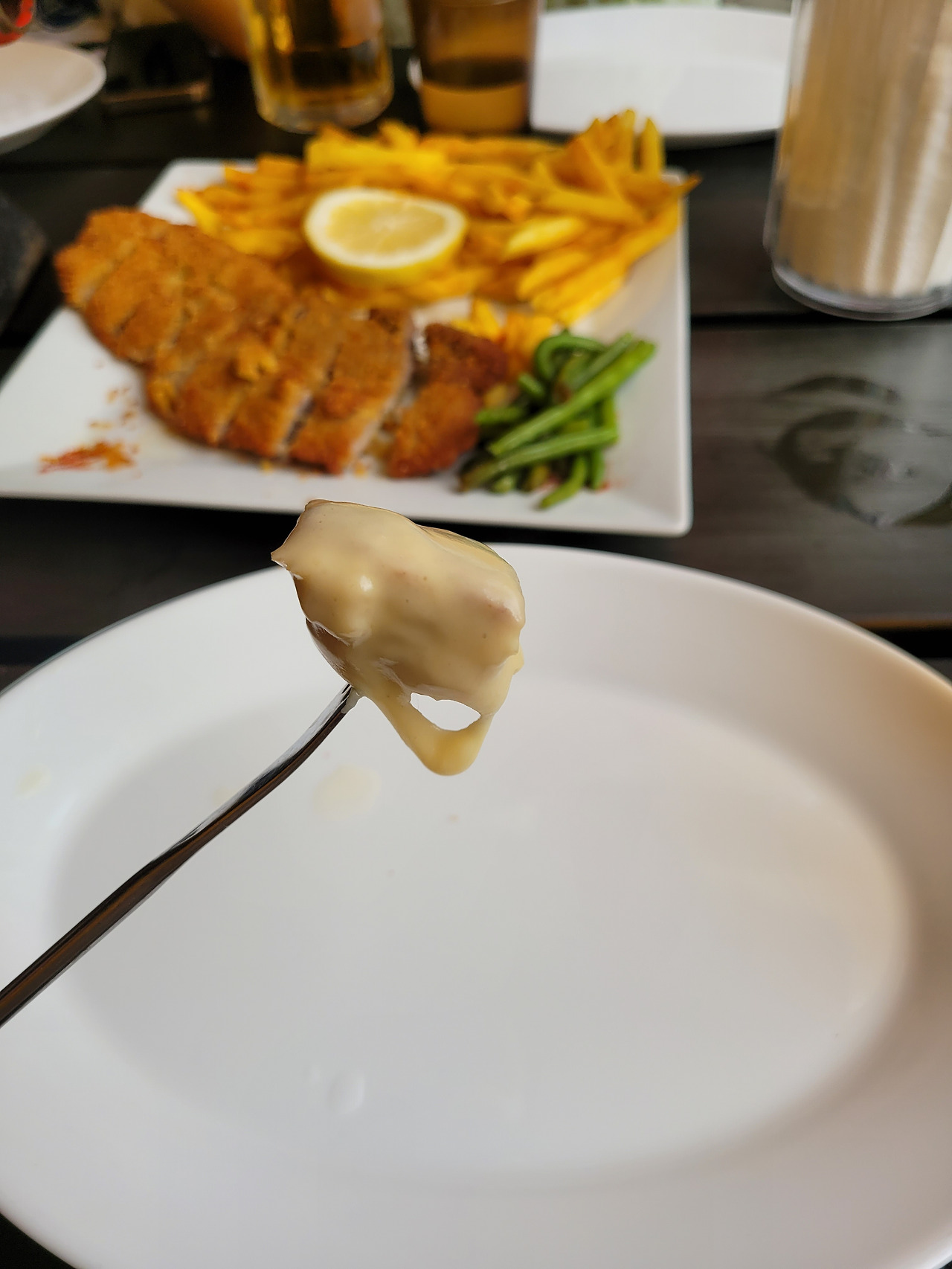 사진에 보여주는 대로임 맛은 썩 그닥 있지는 않은데, 분위기상 먹는거지. 차라리 학세 먹는게 나음...