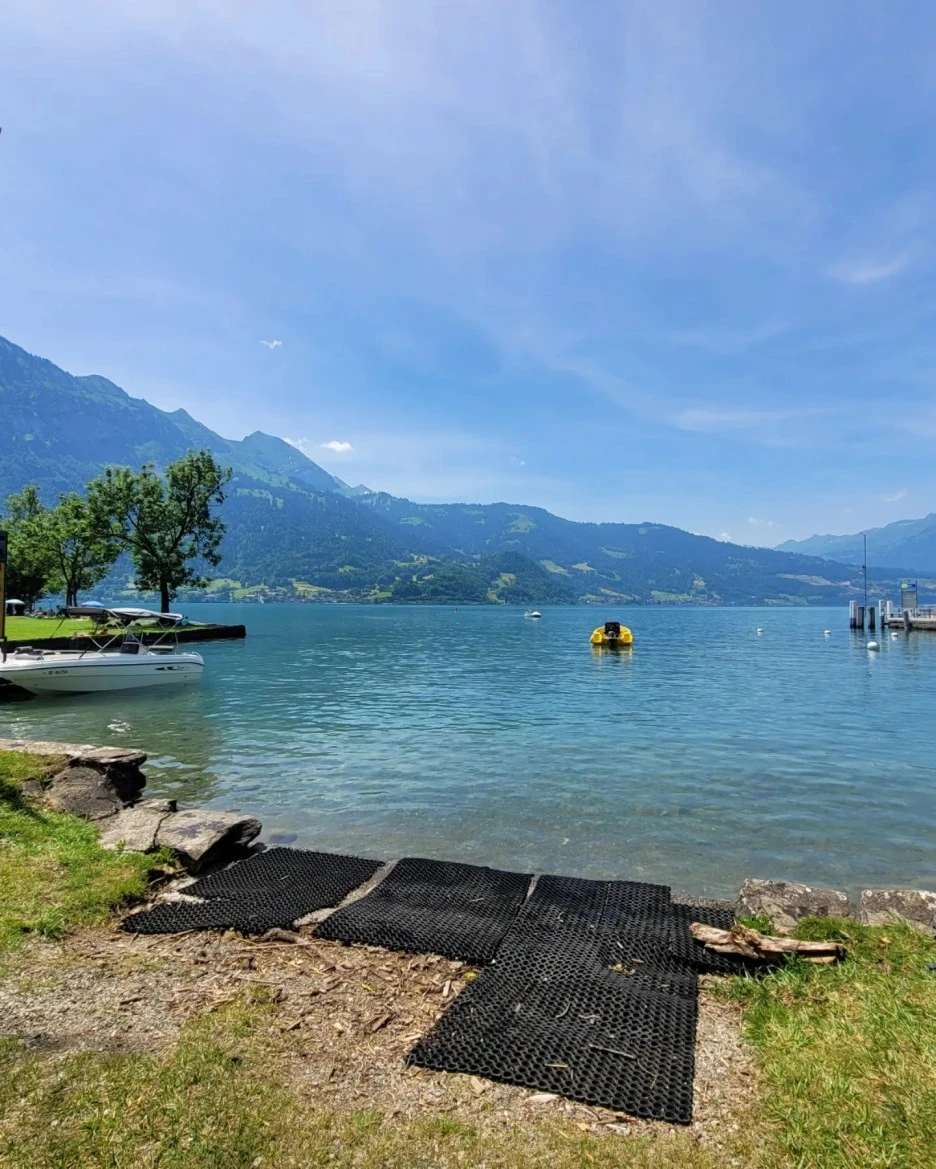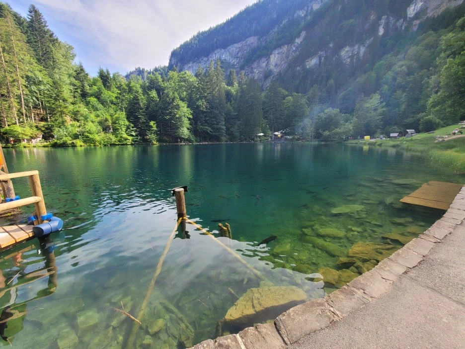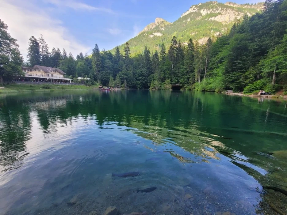 이곳 호수가 스위스 1급수로 취급되는 호수라고 한다. 어디 폭포같은 곳이 없는데 저 숭어들은 어디서 왔는가 했더니 여기서 양식으로 기르는 곳이라고 한다.
