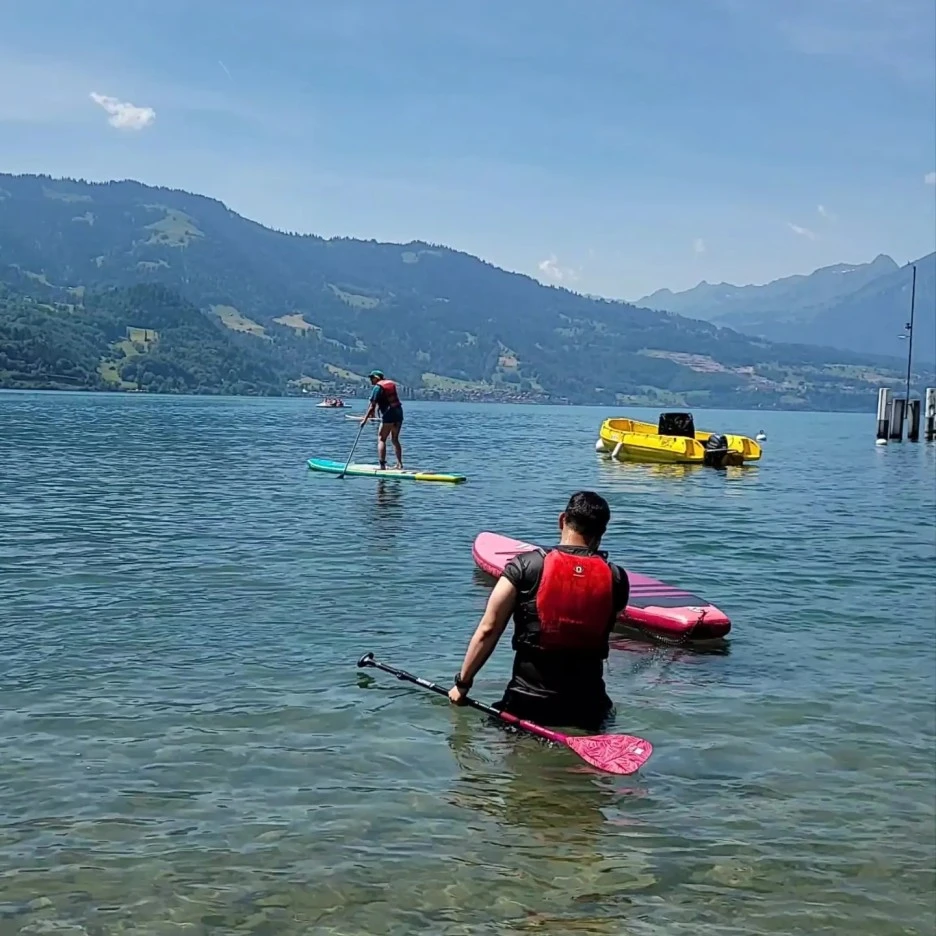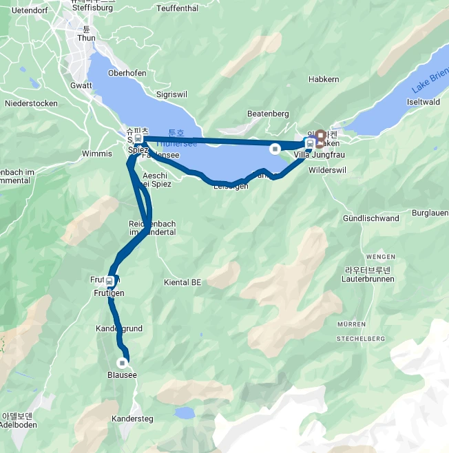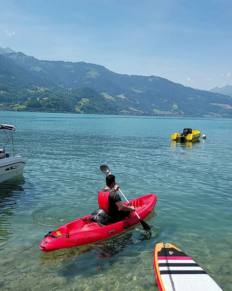 웃긴게 오전에 일정을 치뤄야하는데, 패들보트랑 카약 빌리는 곳이 오후에 문을 연다고 한다. 근데 홍보지에 나와있는 카톡 아이디로 물어보니까 현지에서 직접 물어보면 오전에 가능할 수 있다며 가봐야 된다고, 인터라켄 동역가는 길의 패러글라이딩 예약 장소를 알려주었다.