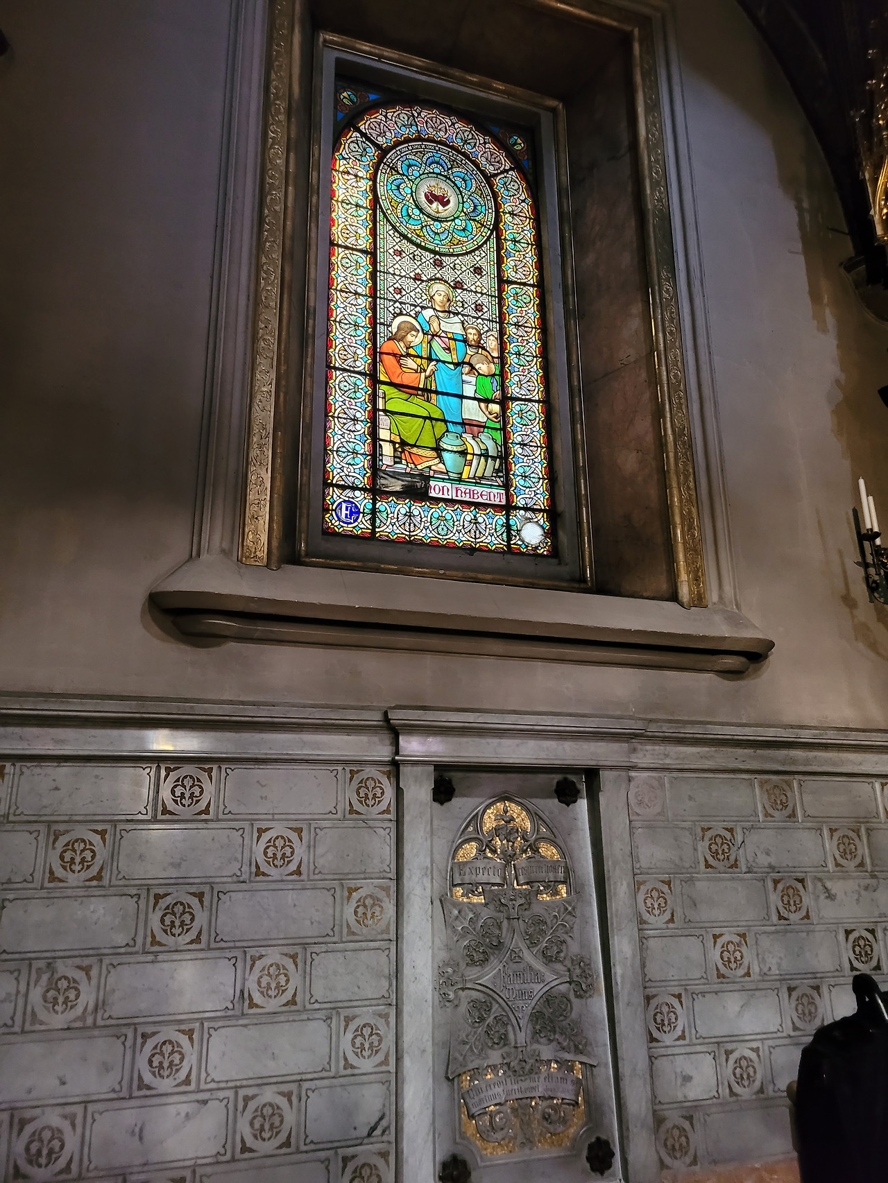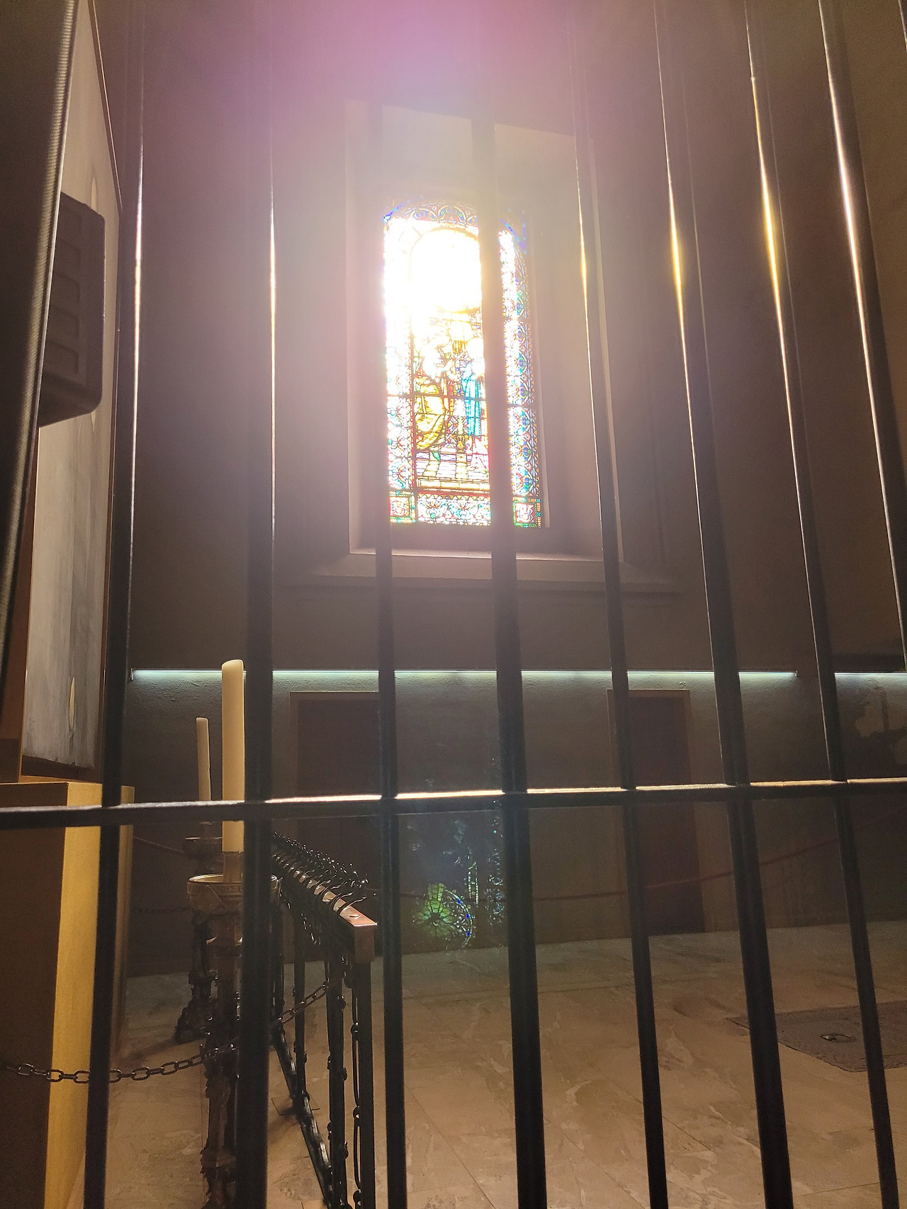 스테인드글라스로 비춰지는 빛이 아주 눈부시다.