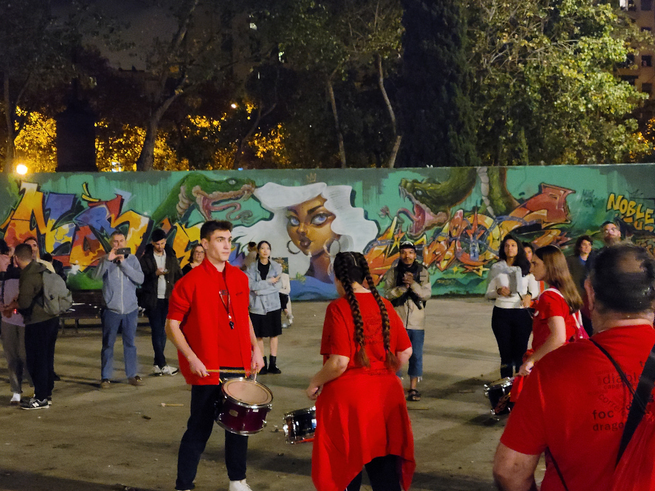 폭죽과 드럼을 미친듯이 터뜨리고 때려대었는데, 귀 고막이 찢어지는 줄 알았으나 연주 보는게 재밌었다.