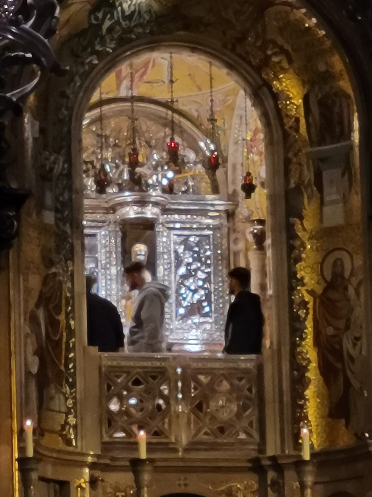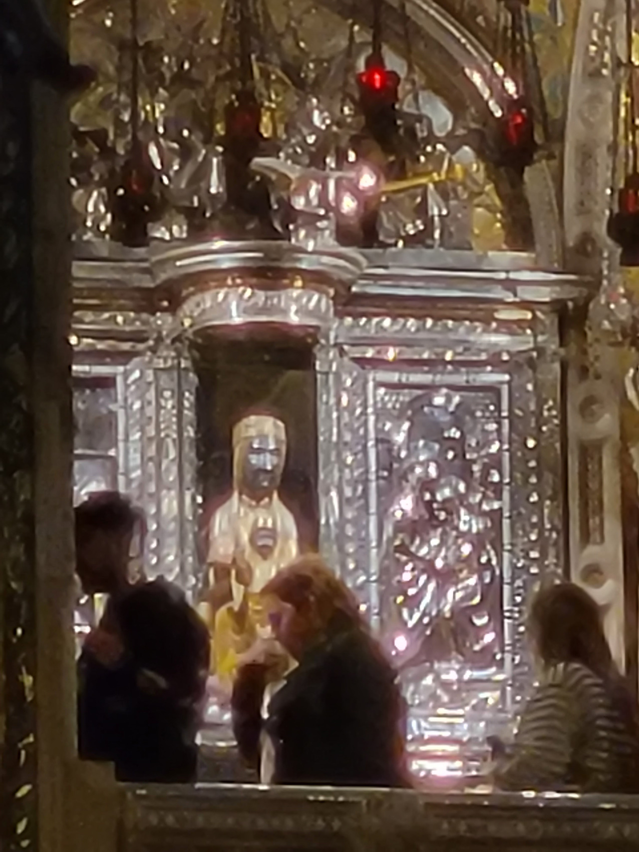 역사 속에서 수많은 기적을 일으켰다는 검은 성모 마리아 상이 중심에 있다. 사실 들어가는 입구가 두 가지 길이 있었는데 한 곳은 성모 마리아상으로 올라가는 계단, 다른 하나는 내가 들어간 입구이다.