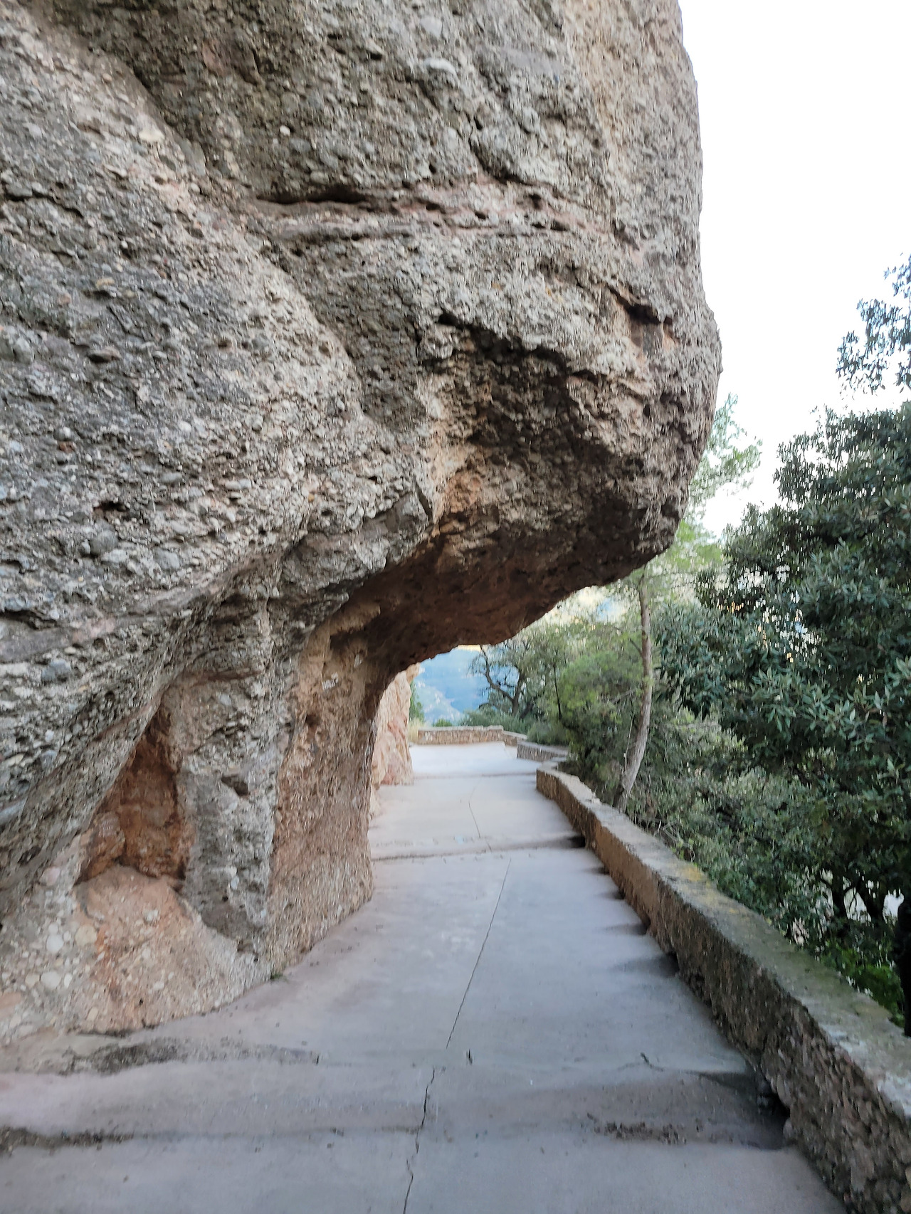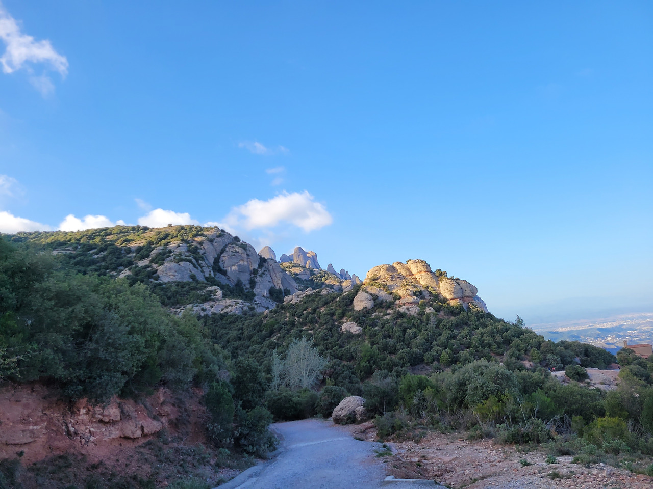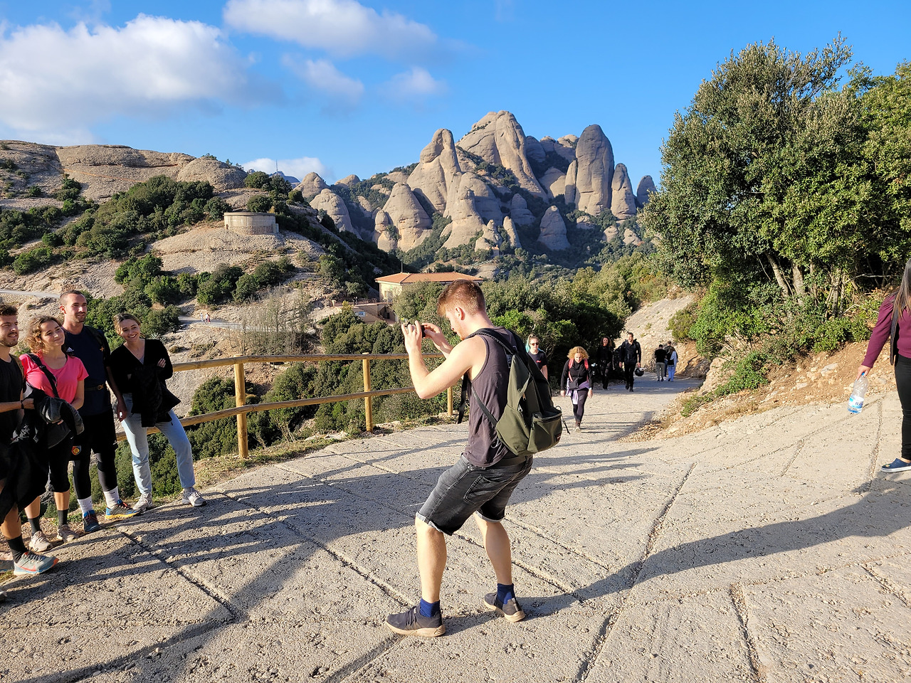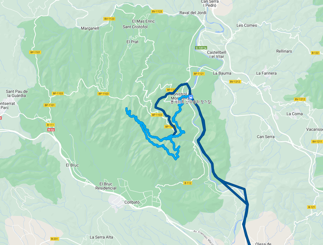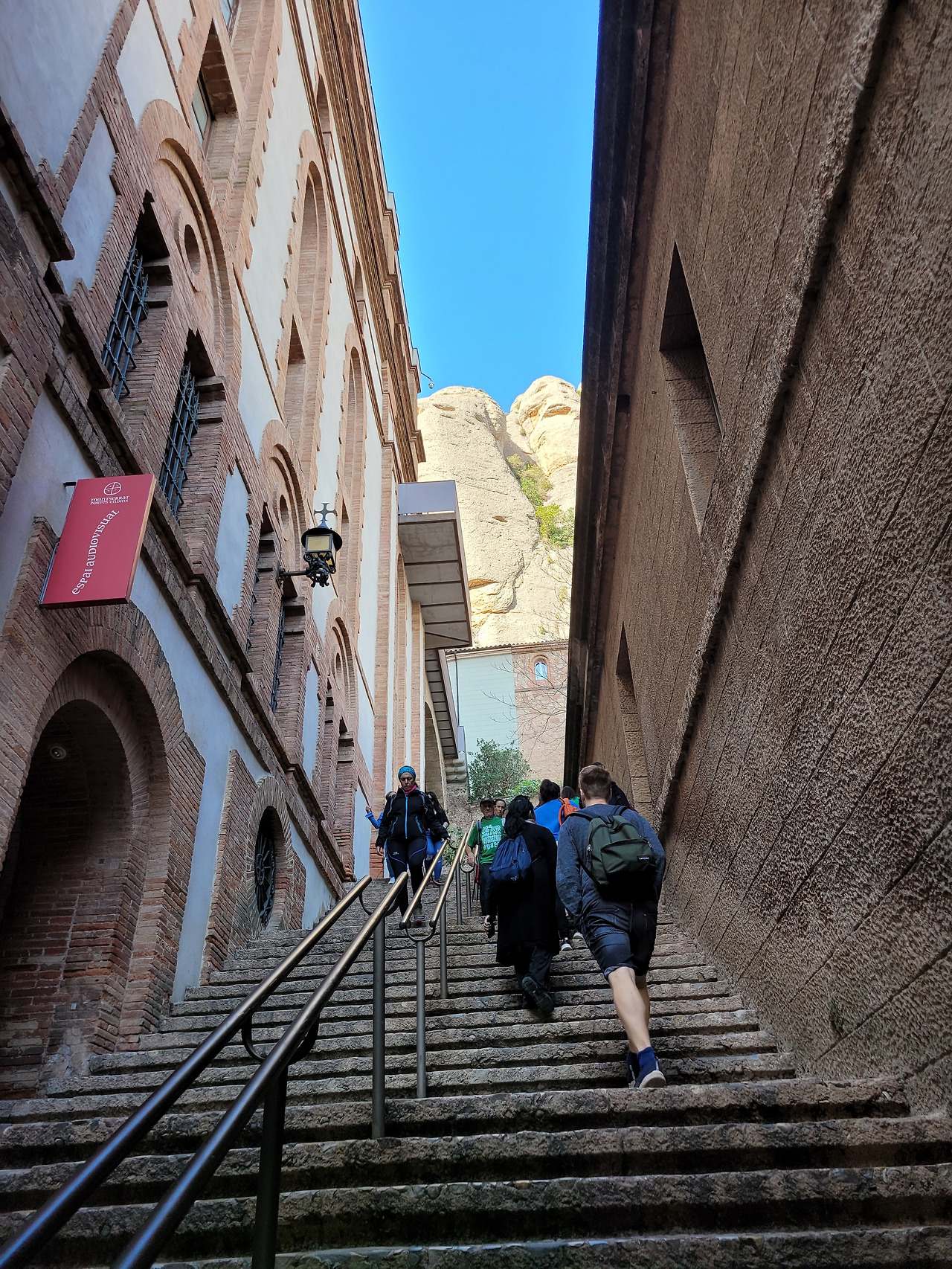 몬세라트 역에서 몬세라트 수도원까지 산악 기차로는 12분이지만 사람이 직접 올라가는 속도가 기계로 올라가는 속도를 이길 수 있을까?