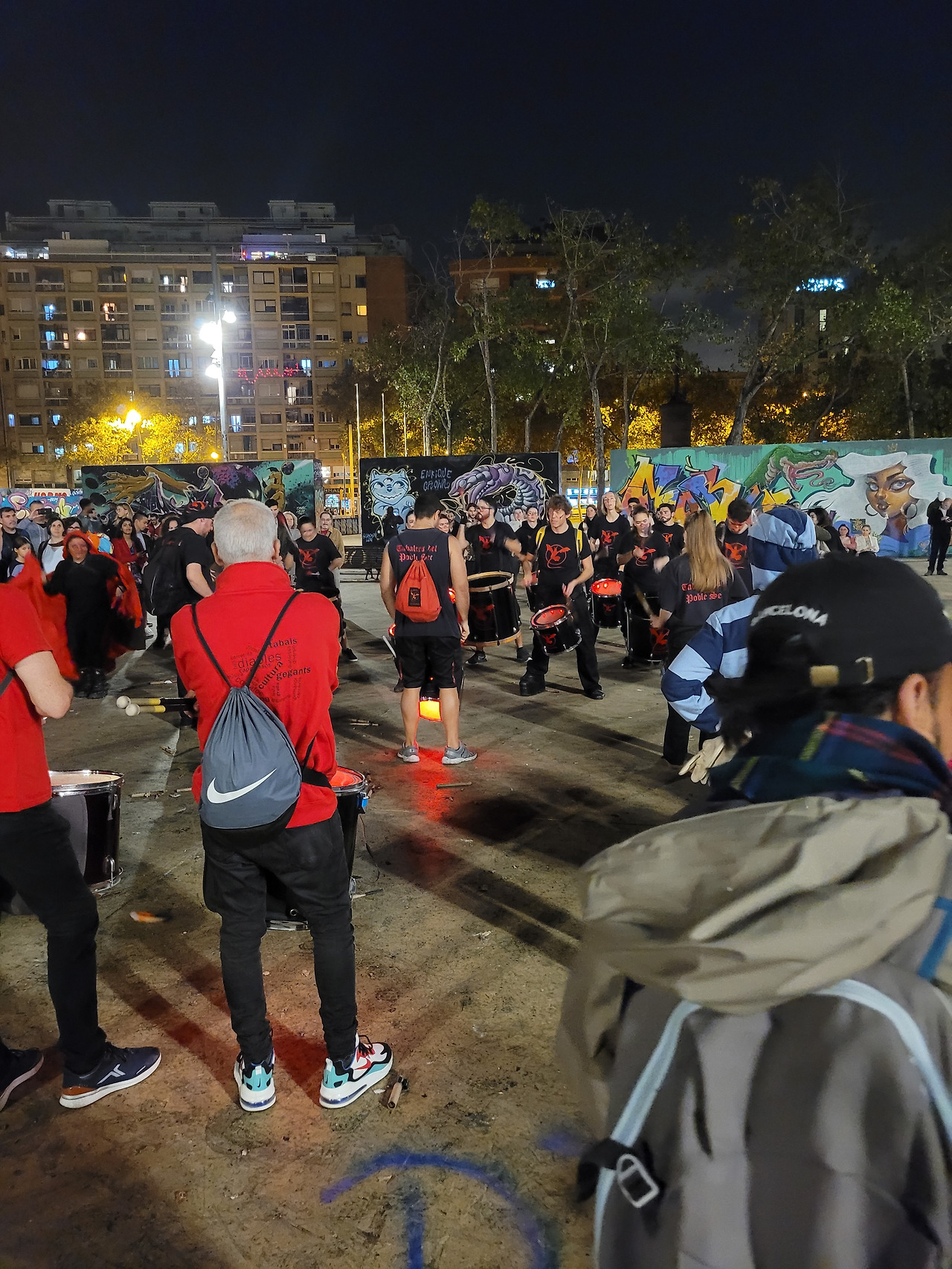 레드팀, 블랙팀이 드럼 연주하는 것을 감상했다.