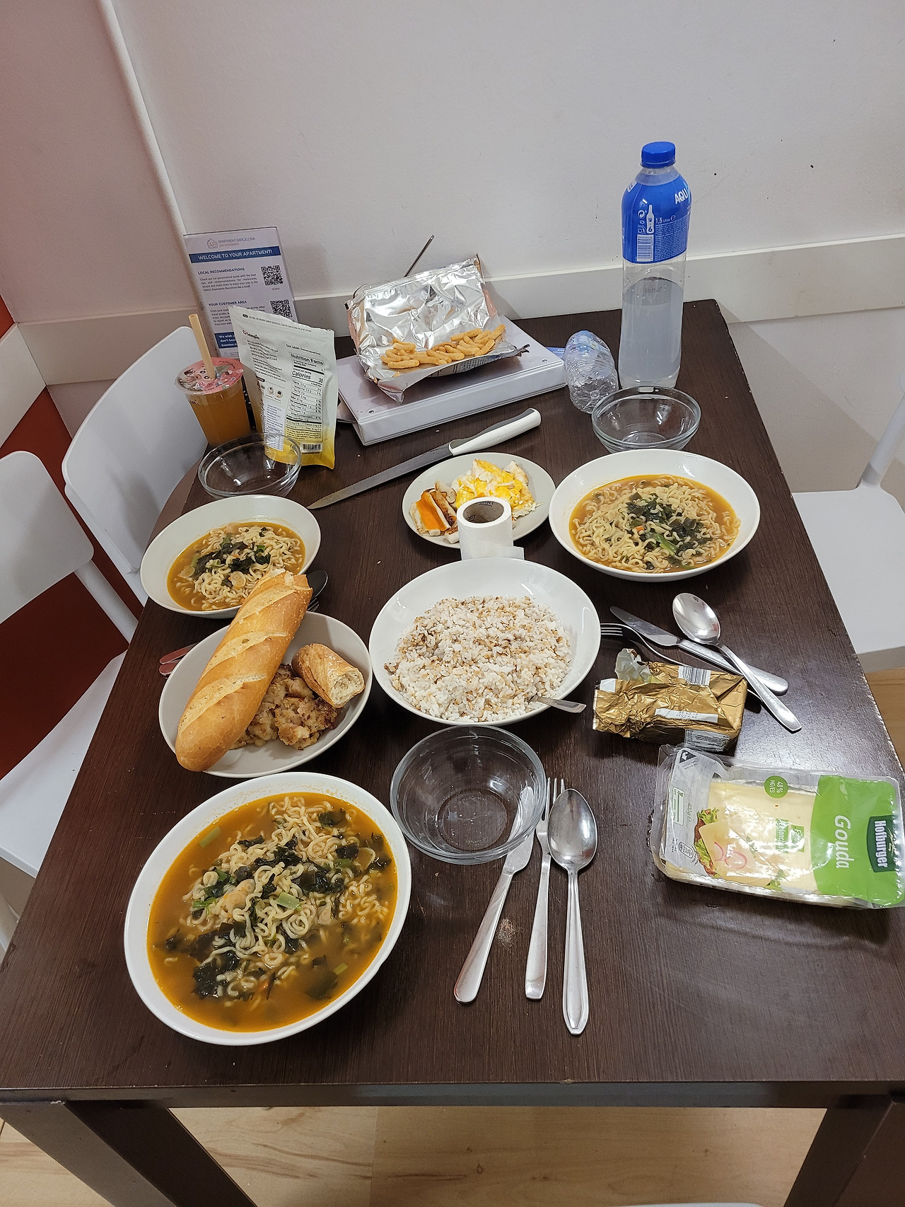 중국인 친구는 본인이 요리 못해서 미안하다고 음식을 사 왔고, 독일인 친구는 바게트에 치즈랑 버터 발라놓고 요리했다고 소개했다. 미친놈인가? 철판이 Martensite 임이 분명하다.