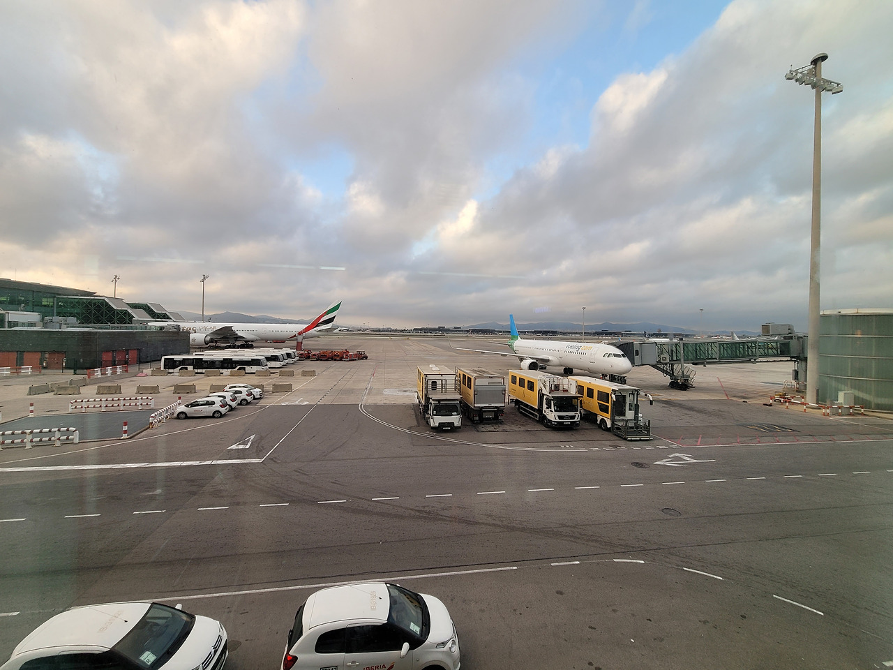 바르셀로나 공항에 가니까 기자가 뉴스를 준비하고 있는 모습을 봤다.