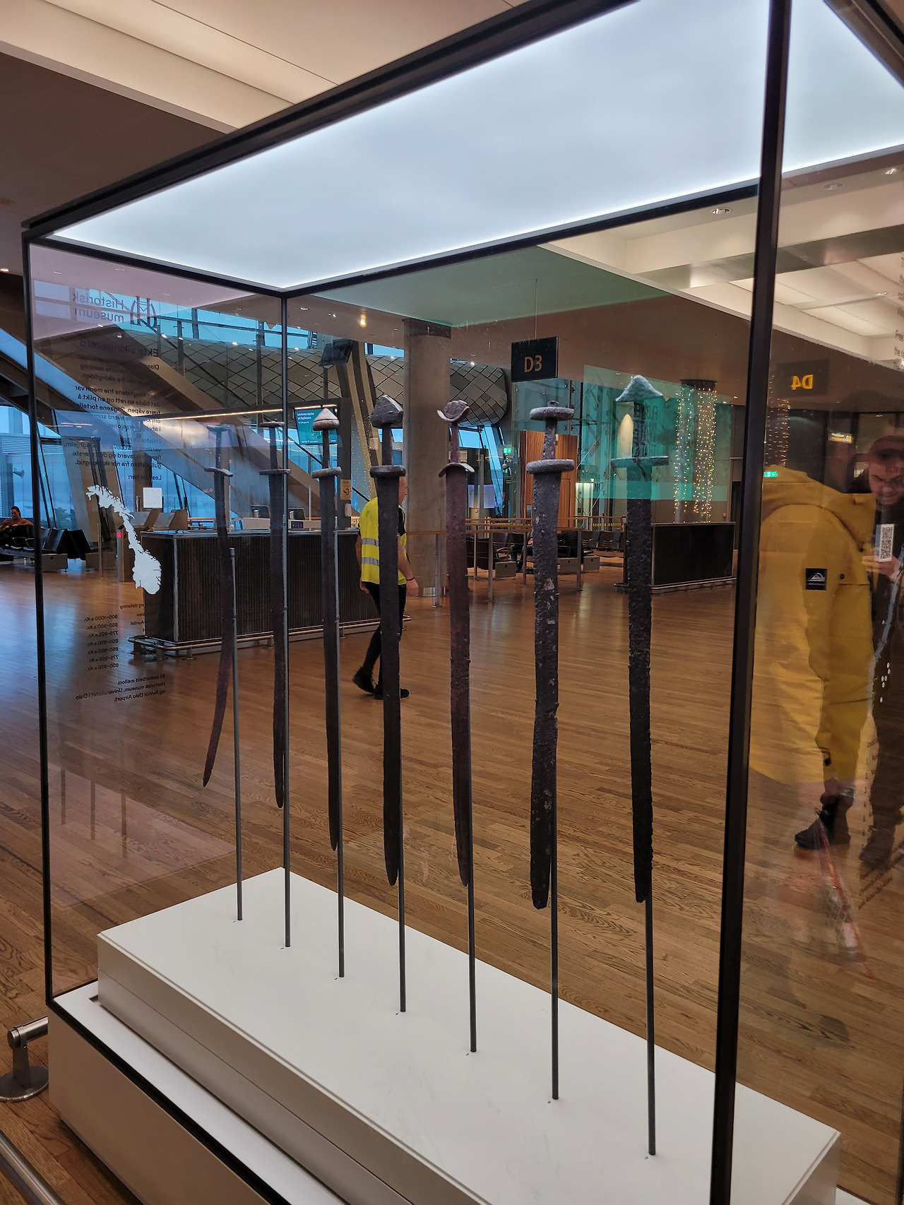 저 7자루의 검들은 1200년 된 바이킹 검이라고 한다. 노르웨이 전역에 바이킹들의 무덤에서 발견되었다고 한다. 매년 오슬로 공항을 거치는 사람들의 인구가 300~400만 정도 된다고 한다. 이 바이킹의 후손들은 본인들 검을 전시해서 노르웨이에 왔음을 알려주는 것 같았다. 그런데 나는 바이킹이 도끼 전사들인 줄 알았다.