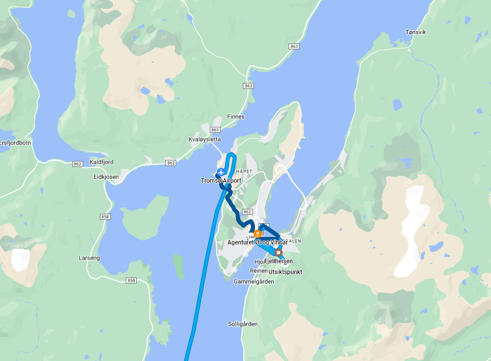 노르웨이 여행 첫날 이동 경로