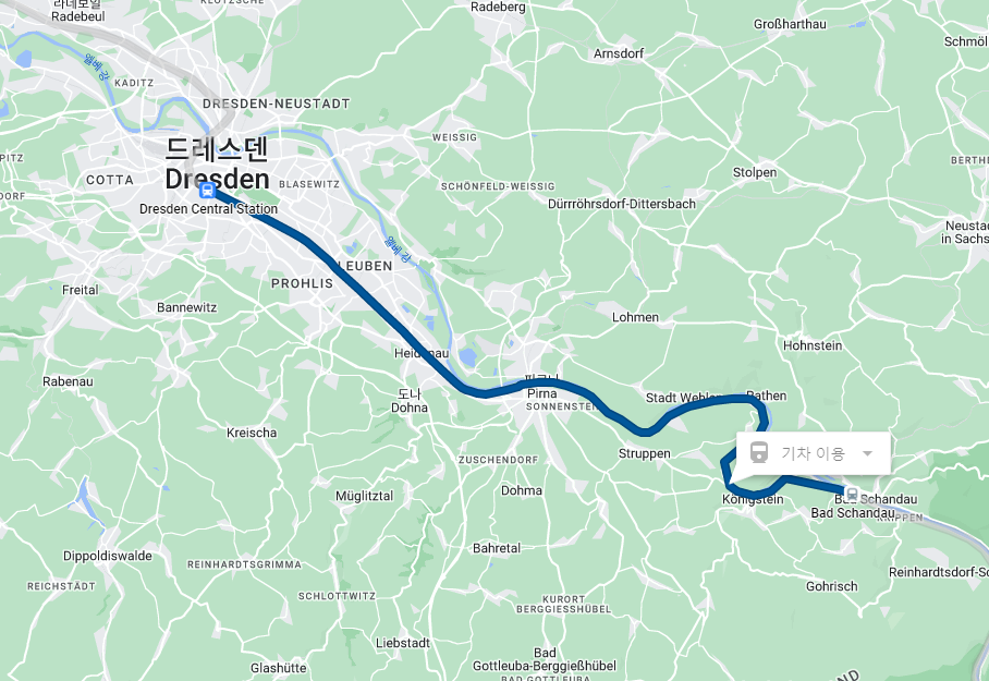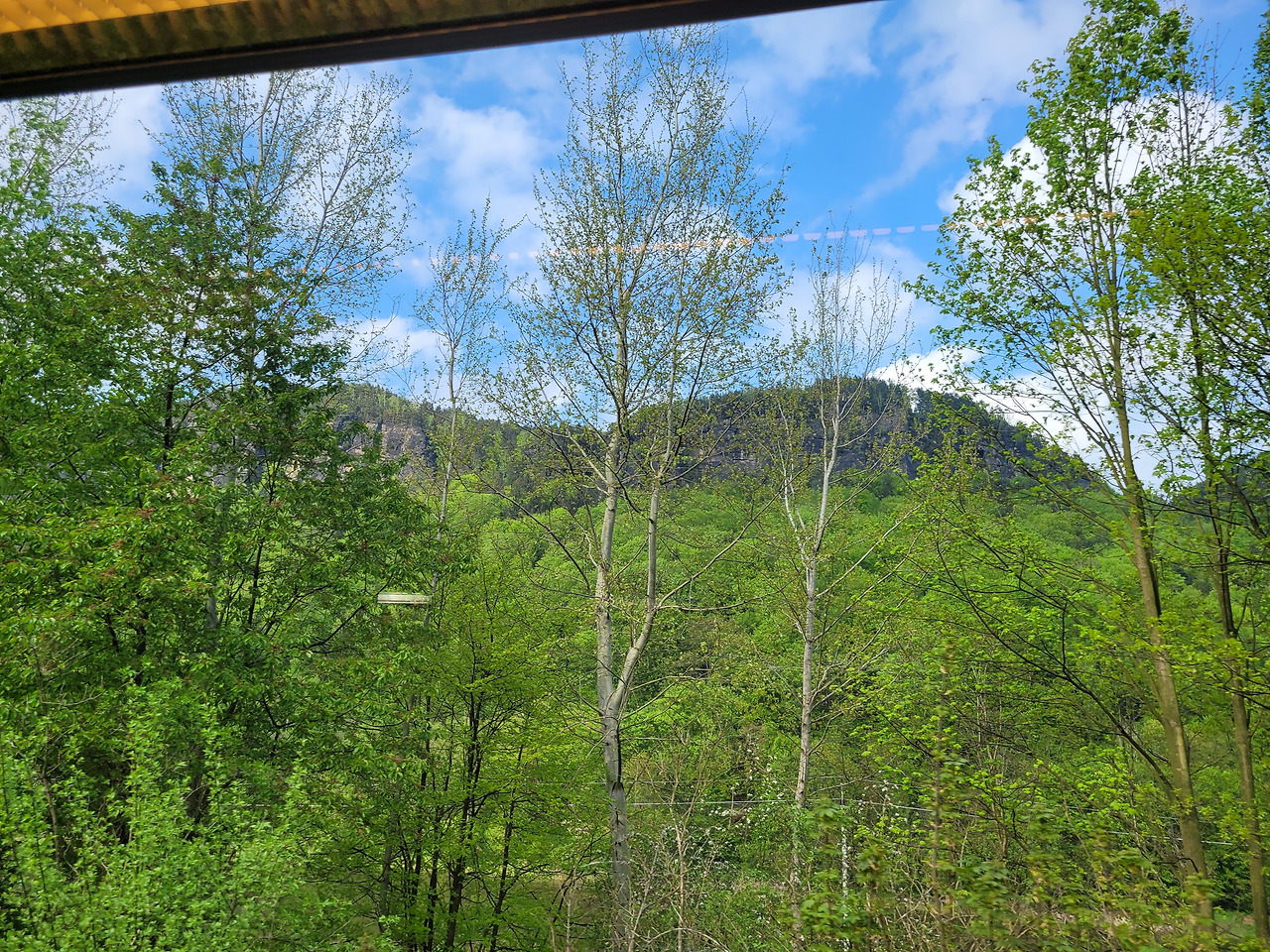 그렇게 다시 출발하게 된 Bad schandau 행에 기차가 독일 영토로 들어가게 되자 기차 내 사람들이 박수를 쳤는데 그 기쁨도 잠시 역마다 서고 또 서고, 기차보다는 전철에 가까운 행보를 보였다. 보니까 이곳에 산들이 많아 등산복을 입은 사람들이 자주 보였는데, 기존에 1~2 칸짜리 전철 교통을 이용하는 사람들과 겹치게 되기 때문에 우리의 기차는 전철 역할도 해야 하는 것이었다.