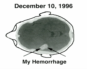 한편 이러한 관점은 뇌졸중이나 좌반구 손상으로 인해 생긴 후천적인 서번트 증후군의 환자의 경우를 설명하기 어렵다. 해외토픽 뉴스감에 가깝게 흔하지 않은 내용이지만, 어느 날 갑자기 뇌를 다친 사람이 그전까지 취미로조차 가까이하지 않았던 예술성 높은 그림을 그리게 되거나, 계산 능력이 뛰어나게 발달하거나, 음악적 능력이 발현하여 늦은 나이에 데뷔한 얘기를 한 번쯤 들어본 적이 있는지? 이런 얘기를 들으면 마치 우리 뇌 안엔 이미 그런 기능이 잠재되어 있다가 외부적 요인에 의해 좌뇌의 통제가 사라지는 순간 우뇌의 능력이 순간 발현되는 것처럼 보이기도 한다. 그럼 일반적인 사람에게서 열심히 우뇌를 지배하고 있는 우리의 좌뇌가 그 역할을 잠시 멈추면 어떻게 될까? 이것과 관련하여 필자가 아주 인상 깊게 봤던 TED talk이 하나 있다. 하버드 뇌과학자인 질 테일러가 뇌졸중을 겪었던 당시를 설명하는 영상이다.* 그녀는 머릿속에 얼음물을 마신 듯 쨍한 통증을 몇 번 겪고 나서 바닥에 쓰러졌는데, 그러고 나서는 유포리아 (정신적 행복이 고양된 상태)를 느끼며 자신의 몸과 주변 환경이 하나를 이루는 듯한 황홀한 경험을 했다고 한다. 그러다 잠시 후에 그녀의 표현에 따르면 '좌뇌'가 말을 걸면서 "일어나, 얼른 911에 전화해"라는 이성적 순간이 찾아왔는데, 조금 있으니 다시 정신적 고양감에 늘어져서 주변 공간과 자신이 섞여서 분간이 안 되는 경험을 반복하다가 겨우 정신을 차리고 911을 불러 병원을 갔고, 아래 그림처럼 좌뇌에 뇌졸중이 왔다는 것을 알게 된다. 그녀 자신이 뇌를 연구하는 사람이었기에 더 자세한 설명이 가능한 것일 수 있겠지만, 이 이상한 경험담은 좌뇌가 제 역할(이성적으로 우리가 해야 할 일을 결정하고 명령을 내리는)을 못할 때의 우뇌가 세상을 인지하는 방식을 짧게나마 보여준다.