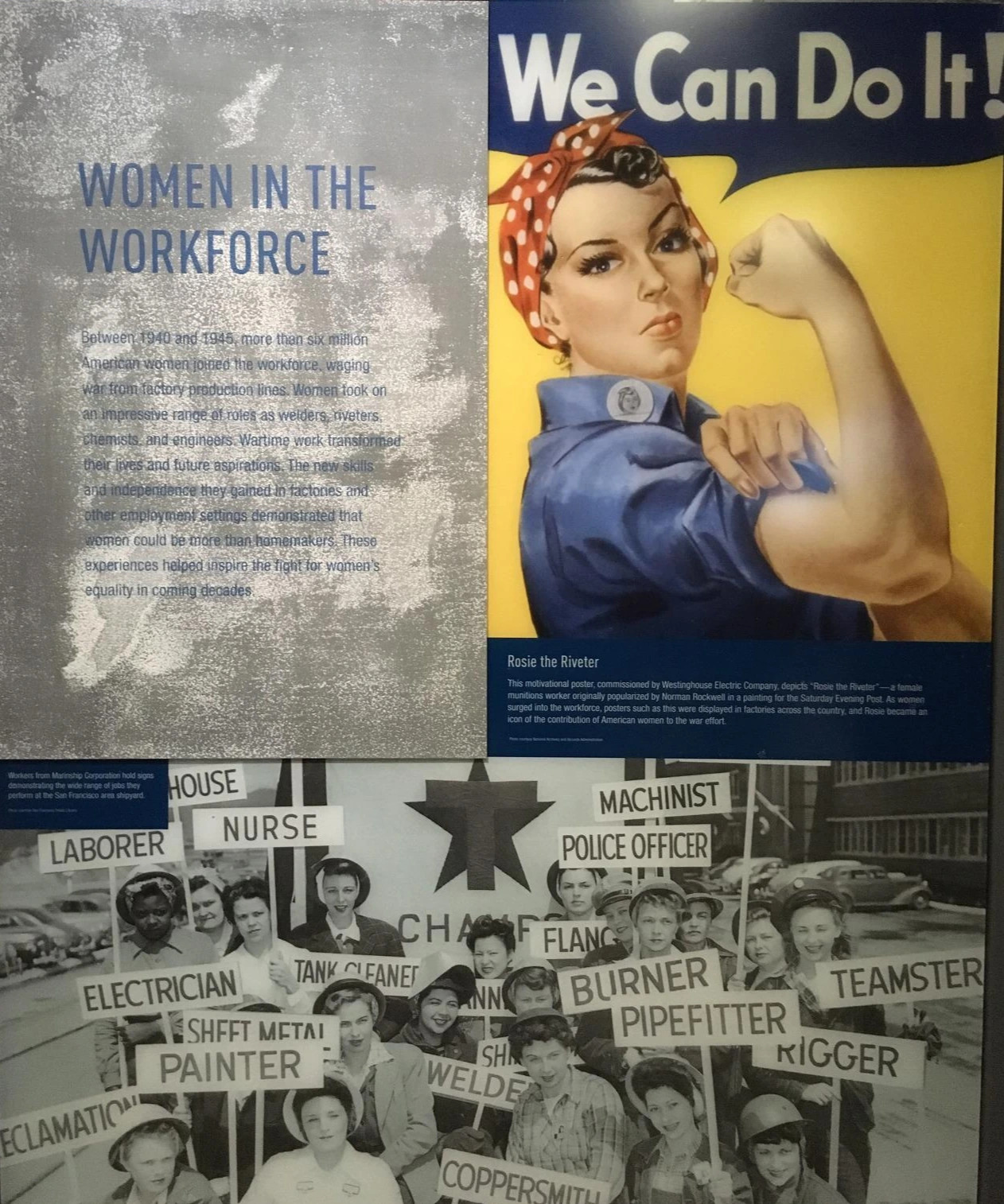 또 한 가지 흥미로웠던 것은 사회 분위기를 원하는 방향으로 조성하고 끌고 간다는 점이었다. 예를 들어서, 'We can do it'이라는 말과 함께 강한 여성의 이미지를 내보이는 유명한 포스터는 이 전쟁의 시기에 처음 나온 것이었다. 남자들은 다 전쟁을 하러 갔으니 나라의 경제가 돌아가려면 일하는 사람은 필요하고 그래서 여성이 남성들이 하던 일을 대신해야 하는 상황이 온 것이다. 물론 그뿐이 아니라 전쟁터에도 일손은 필요했고. 사회 전체적인 분위기가 강하고 힘 있고 일하는 여성상을 원하고 그런 여성을 키우도록 흘러갔다. 여자도 전쟁에 나갈 수 있다는 광고나 앞서 언급했던 포스터가 널리 자리 잡았다.