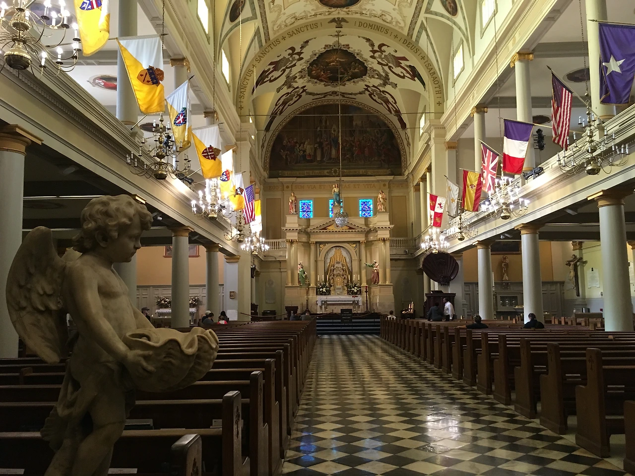 미국에서 가장 오래된 성당으로 뉴올리언스에서 꽤나 유명한 랜드마크 중의 하나이다. 그도 그럴 것이 이 성당은 1727년 프랑스령 때 처음 건축되어 재건축과 레노베이션을 통해 지금까지 많은 역사와 함께 했던 건물이다. 성당에 들어가면 양쪽으로 많은 깃발이 달려있는 것을 볼 수 있는데, 모두 뉴올리언스의 역사이다. 16세기쯤에는 합스부르크의 깃발이, 17-18세기에 들어서는 프랑스의 깃발이, 18세기 말부터는 스페인의 깃발이, 그리고 영국, 프랑스, 미국의 깃발이 루이지애나의 상징이었다. 지금 현재는 주의 상징인 펠리컨이 그려진 깃발을 사용하고 있다.