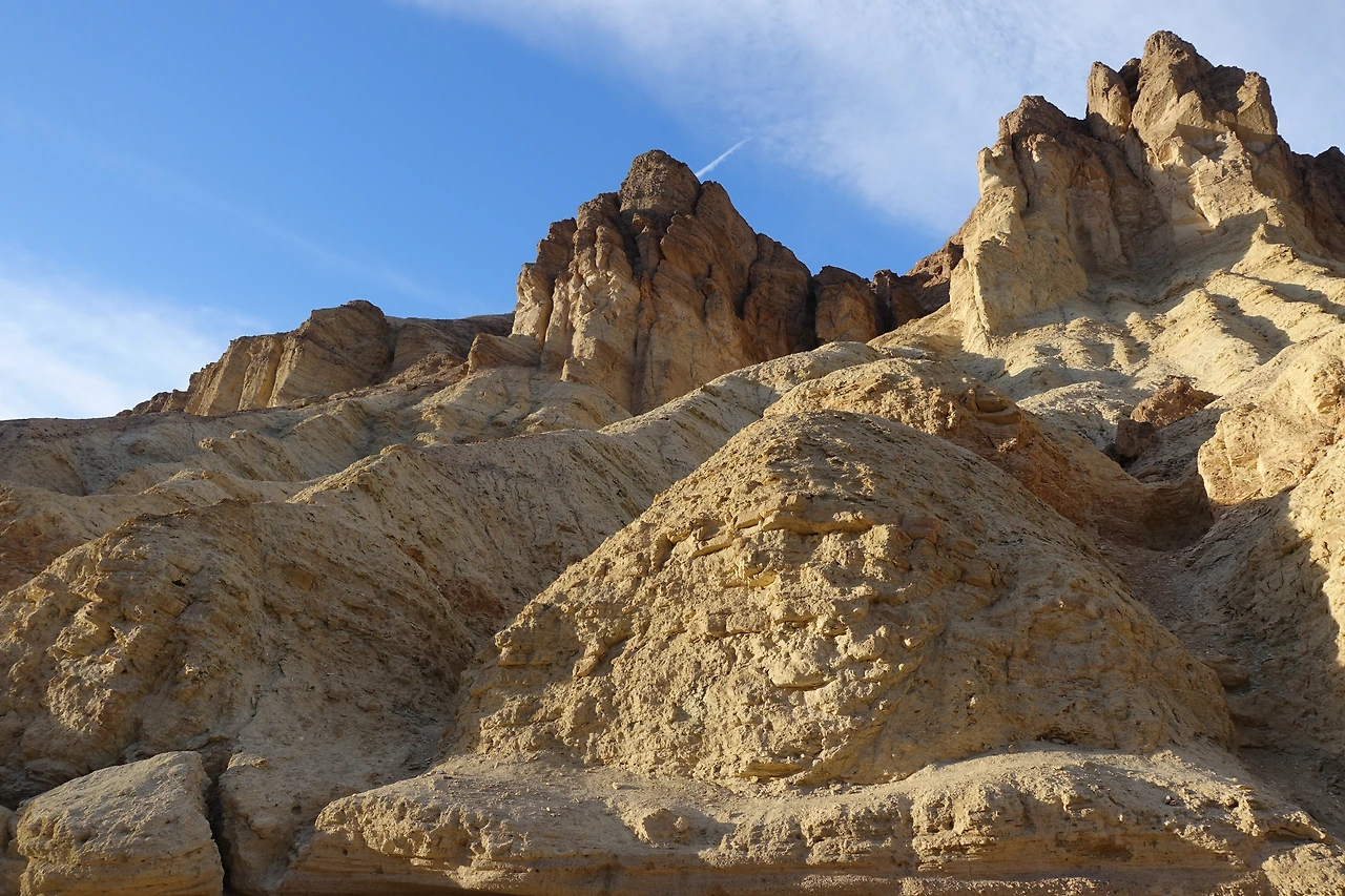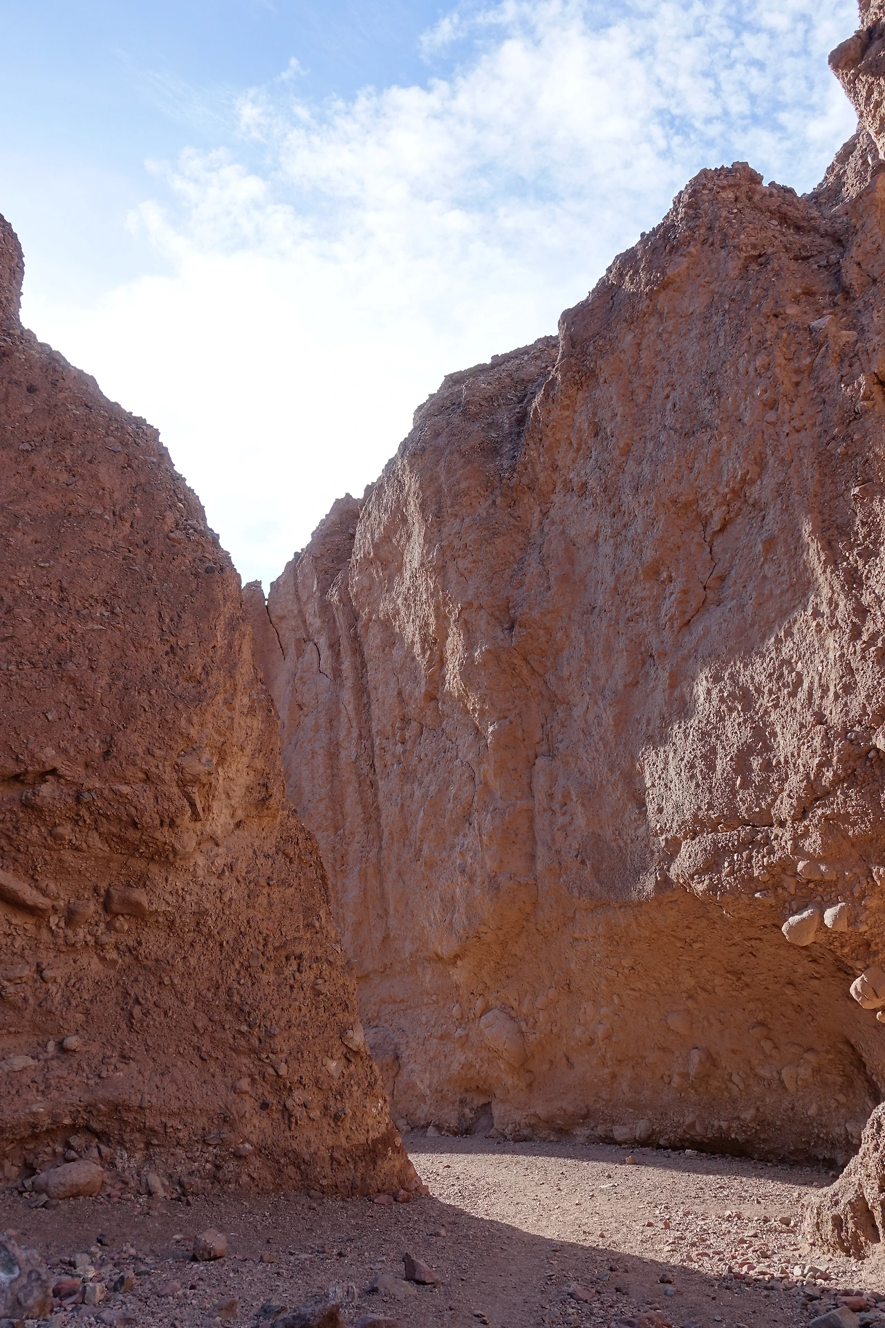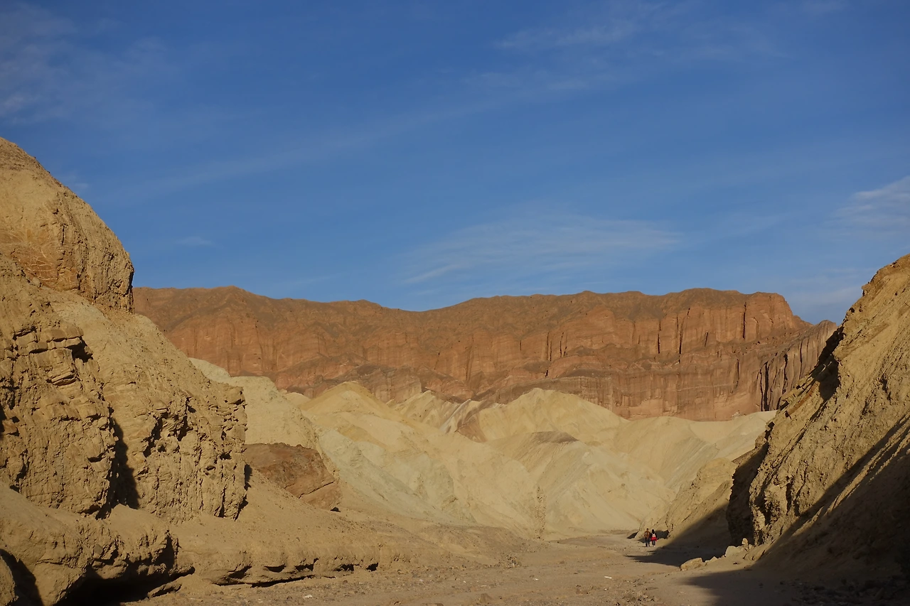 이 곳은 짧은 트래킹 길이 있다고 하여 들러보았다. 이 캐년의 색이 금색이라서 이러한 이름이 붙었다고 한다. 개인적으로는 흙색이나 금색이나 한 끝 차이라고 생각되지만. Badwater basin을 시작으로 한 우리의 일일투어는 Zabriskie point에서 끝날 예정이었는데 golden canyon의 트래킹 길을 계속 따라가다 보면 Zabriskie point까지 갈 수 있다. 미리 알았더라면 그 길을 트래킹을 했을 것을 이미 시간을 많이 써버려서 해지는 해가 지는 시간에 맞추어 Zabriskie point까지 가려면 걸어서는 힘들었다. 게다가 차를 이곳에 주차해 트래킹을 하고 다시 이 곳으로 돌아오는 것도 문제였다. 역시나 하루 일정으로 오면 아쉬움이 남는다. 결국 우리는 Red cathedral까지만 다녀왔다. Red cathedral 역시 이름에서 나타내듯 붉은색의 거대한 돌산이었다. 이 역시도 진짜 같아 보이지 않았다. 눈속임을 위한 패널이 멀리에 서있는 것이 아닐까 생각될 정도였다.