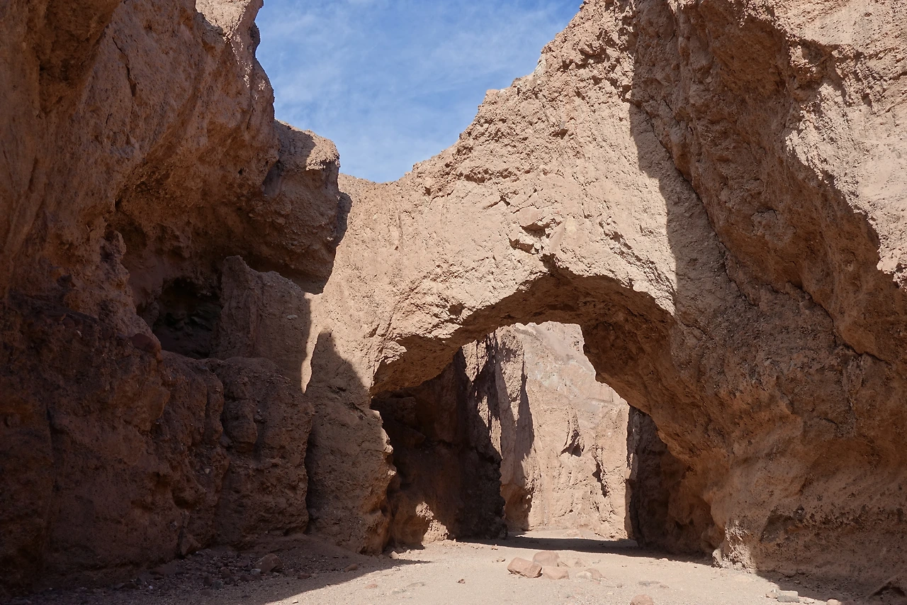 다음 목적지는 Badwater basin과 가까운 내추럴 브릿지. 주차장에 차를 세우고 트래킹 길을 따라 조금만 걸어가면 기이한 모양의 바위가 나온다. 자연적으로 생긴 돌인데 다리 모양이었다. 그제야 이름의 의미를 이해할 수 있었다.