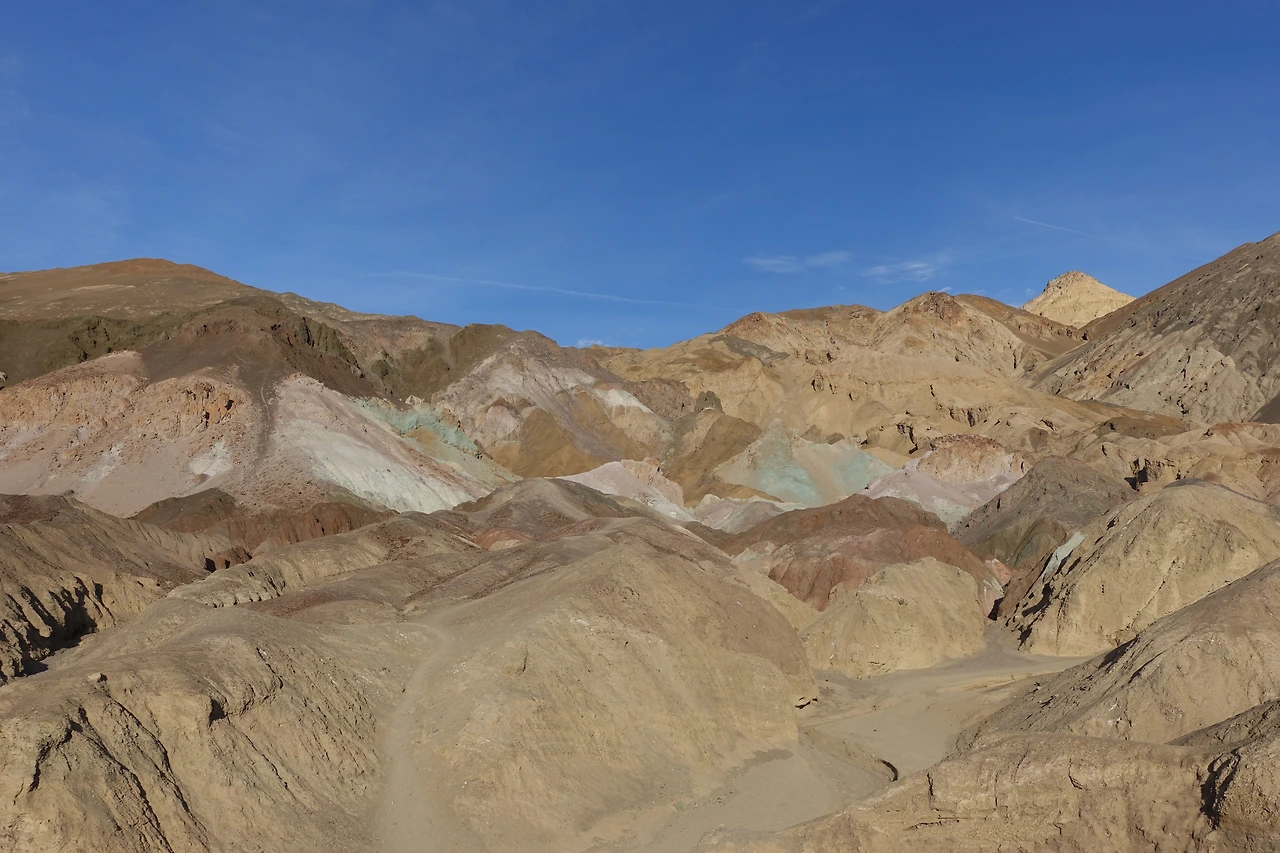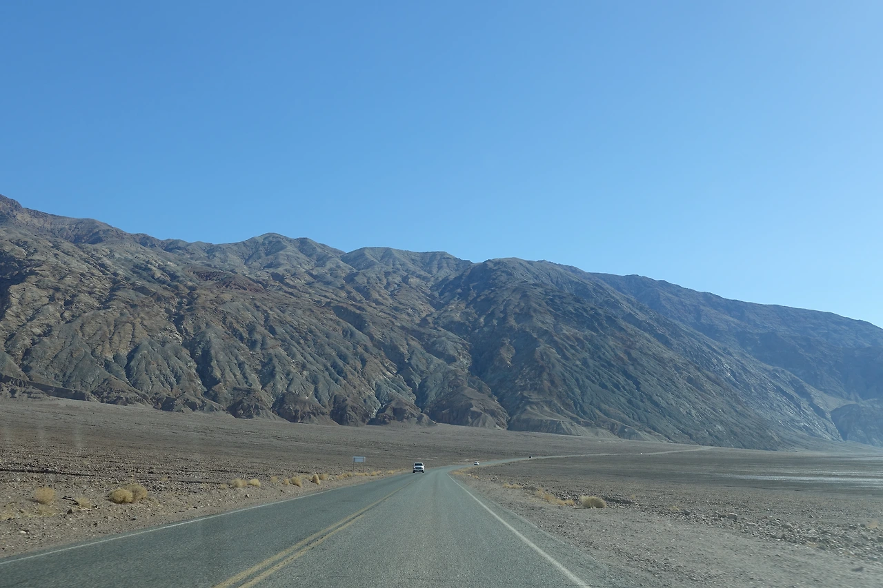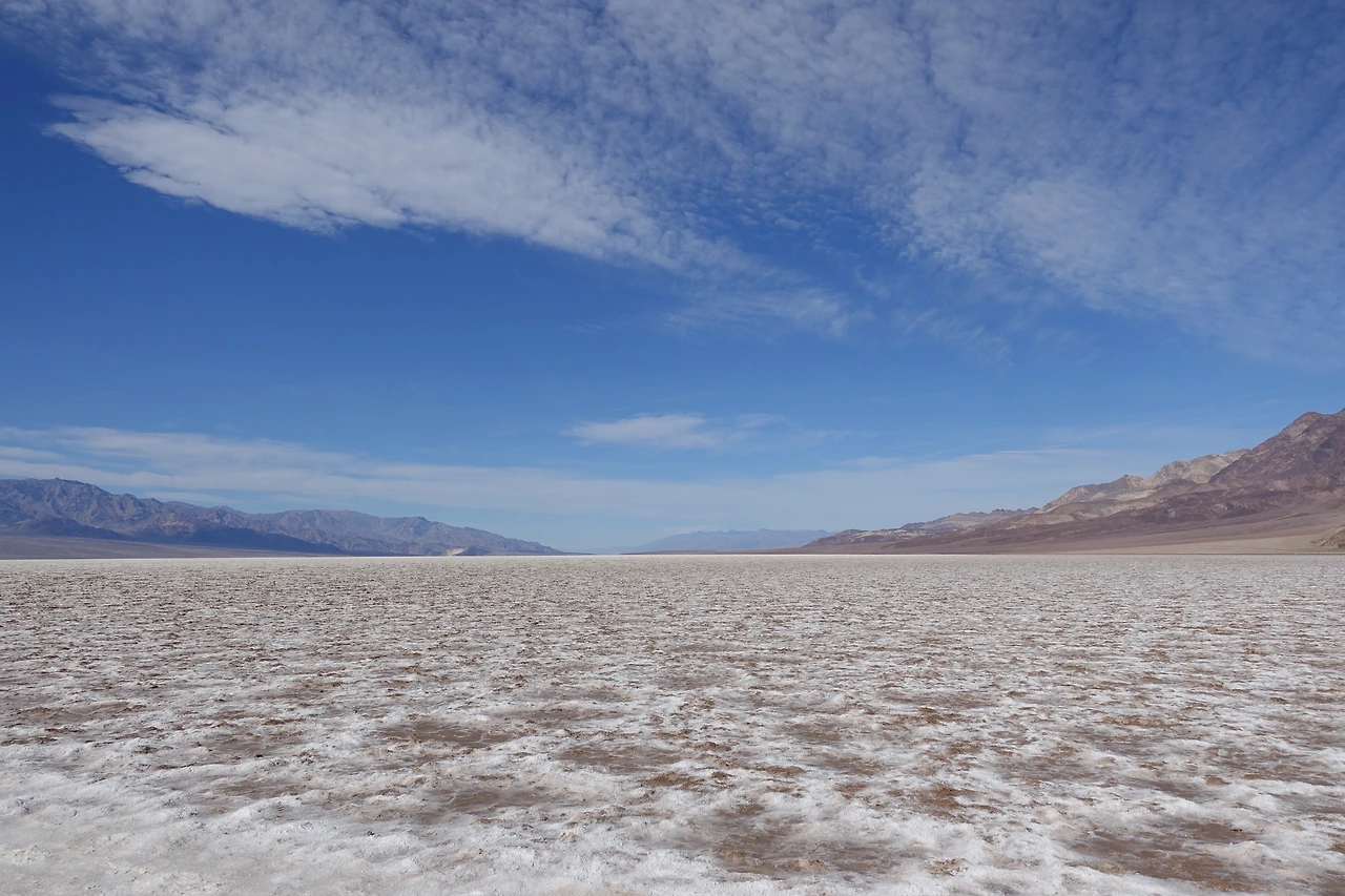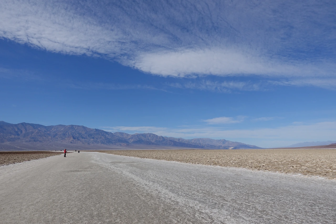 어쨌든 가게 되었다. 죽음 계곡. 사막 한가운데에 있어서 죽음 계곡인 건가 싶어서 찾아보니 세계에서 제일 더운 곳 중에 하나라고 한다. 여름에 가지 않아서 다행이라고 생각했다. 극심하게 더운 여름과 짧은 겨울이 있는 데스벨리. 도착했을 때의 날씨는 아주 좋았다. 낮에는 햇빛이 강하고 건조해서 트래킹을 하는 동안은 더웠지만, 오고 가는 동안 바람이 불면 쌀쌀하다 느껴지기도 했다. 더워서 긴팔 겉옷을 벗으면 햇빛이 너무 뜨거워 다시 입고 싶어 졌다. 이것이 바로 사막 기후구나.
