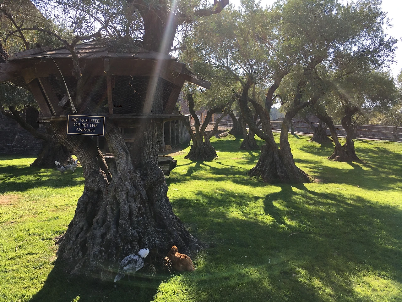 테이스팅이 끝나고 와인이나 기념품을 사서 뒷문으로 나오면 잔디밭에 돌아다니고 있는 동물들을 만날 수 있다. 울타리는 있지만 염소나 닭, 칠면조 등등의 동물들이 꽤나 넓은 잔디밭에서 자유롭게 있었다. 다만 햇빛이 너무 세고 덥다 보니 다들 그늘에 누워서 쉬고 있었다.