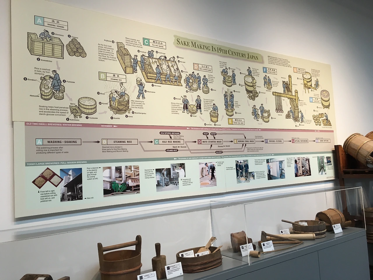 테이스팅 룸 한쪽에 박물관이 있었다. 크지는 않지만 사케를 만드는 과정에 대해서 설명되어 있고 오래전에 사용했던 것으로 보이는 도구들이 진열되어 있었다. 쌀이 어떠한 과정을 거쳐서 술이 되는지를 흥미롭게 읽었다.