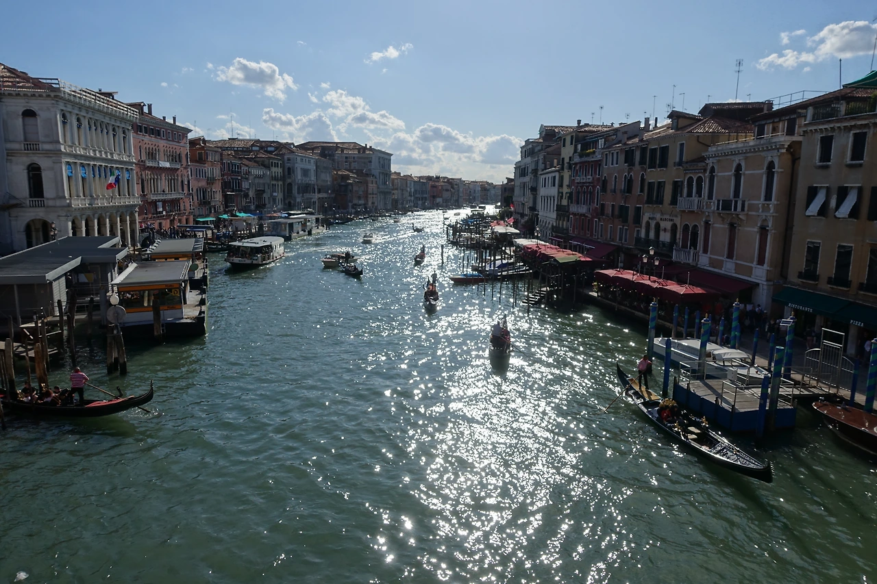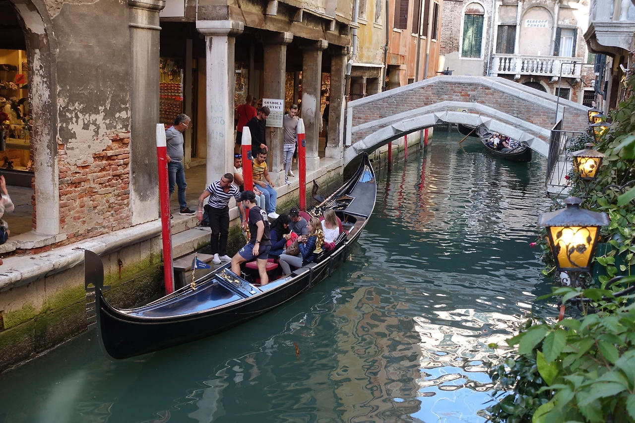 북쪽으로 계속되는 여행의 다음 목적지는 베네치아였다. 지난번 이탈리아 여행 때 가장 좋은 기억이 있는 곳이라 기대가 되었다. 지난번 이 도시에 방문했을 때는 겨울이었기에 도시 전체가 우중충 했었는데, 이번엔 여름이라 더욱 멋있을 것 같았고 밝고 활기찬 모습을 상상했다. 가이드님은 베네치아에 가는 동안 버스에서 베네치아 출신의 신부이자 바이올리니스트이자 작곡가인 비발디의 사계를 틀어두시고는 베네치아에 대해 설명하기 시작하셨다. 이윽고 부두에 도착한 버스는 우리를 내려놓고 떠났다. 지난번에 왔을 때는 배낭여행이었기에 기차를 탔고 베네치아 안쪽에 있는 기차역에서 내렸지만, 버스로 오니 배를 타고 들어가야만 했다. 본토가 아닌 구도심 내에는 차가 다닐 수 있는 길이 없어 수로를 이용하거나 걸어야만 한다고 한다. 우리는 미리 예약해둔 작은 배를 타고 구시가지에 도착했다.