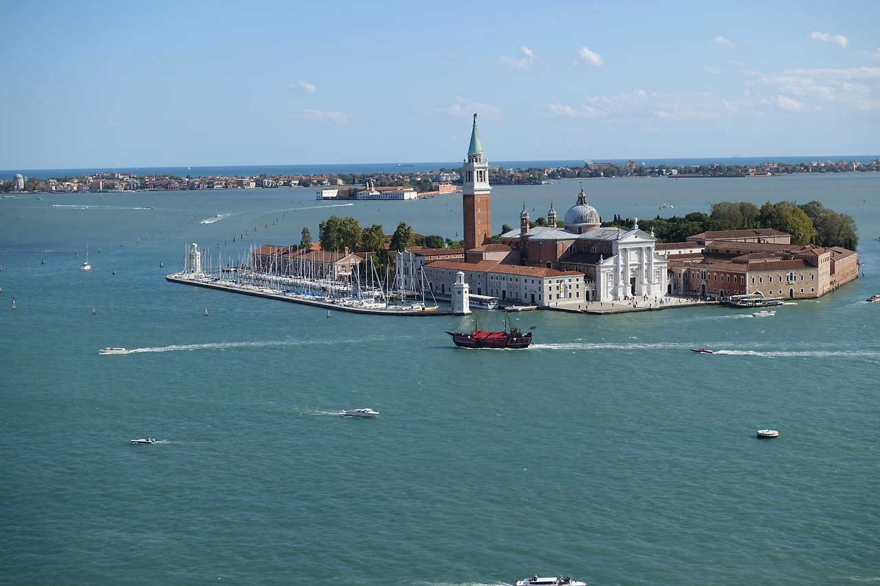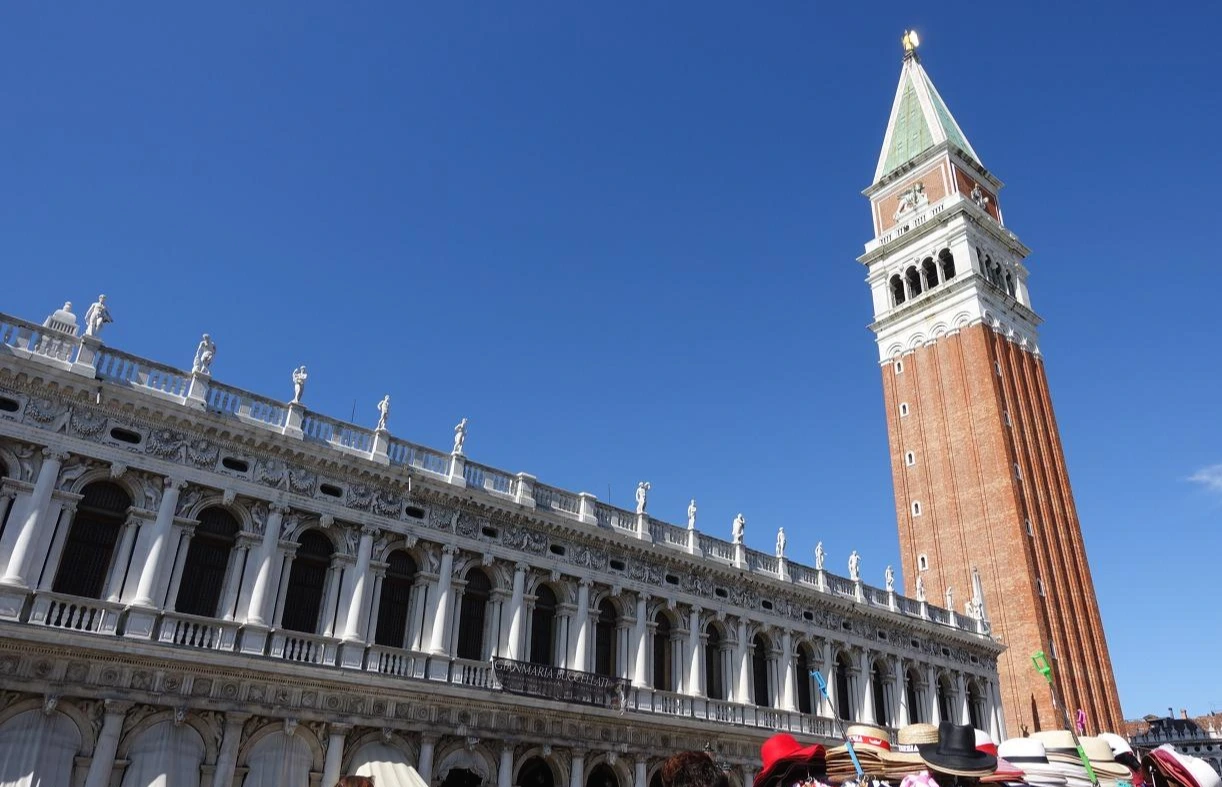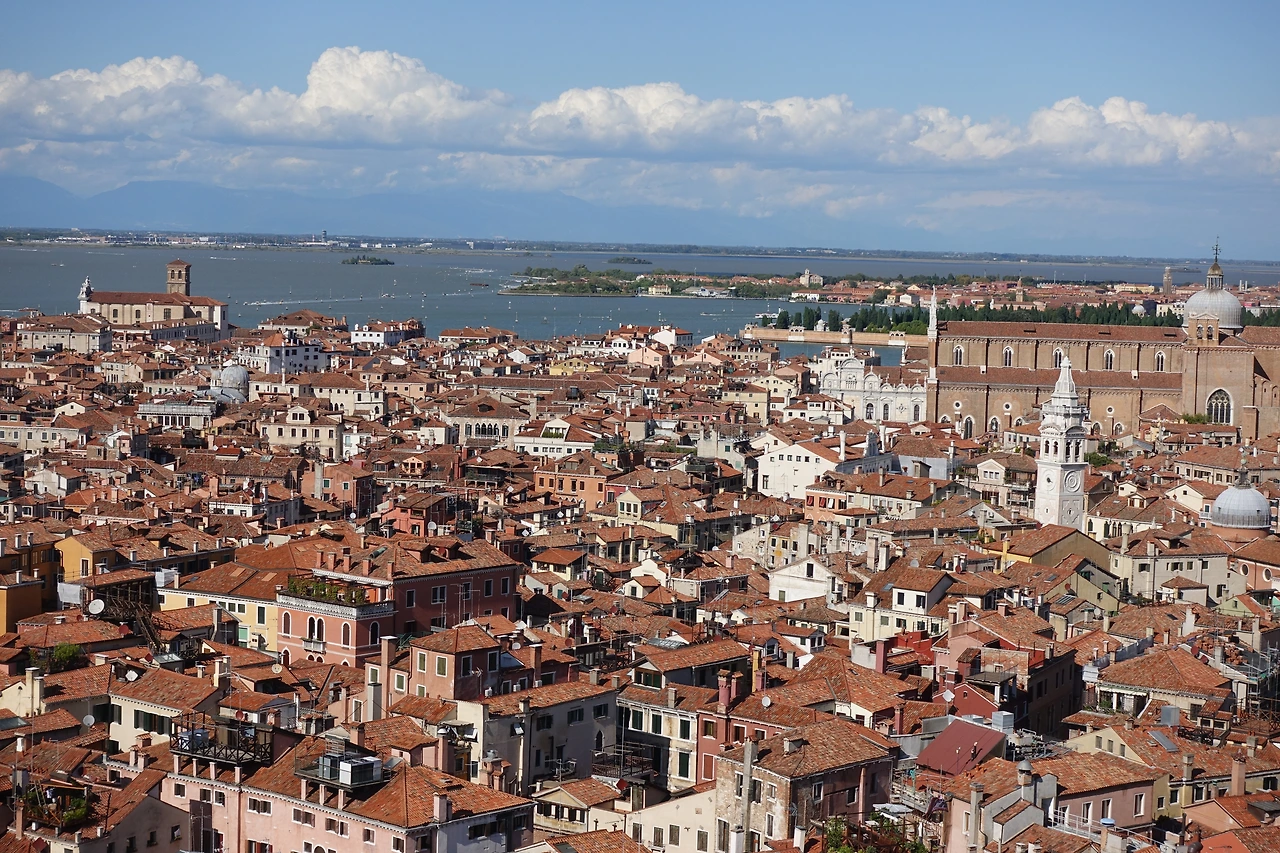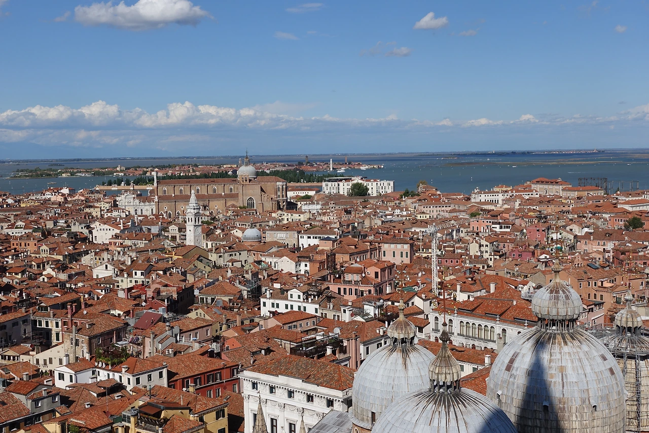 종탑은 한 번 붕괴된 이후 다시 지어졌고, 지금은 엘리베이터로 올라갈 수 있어 줄을 길게 서기는 하나 많이 걸어 올라가지는 않아도 된다. 종탑 위에 올라가서 보는 오밀조밀한 베네치아의 모습은 눈부신 날씨와 바다와 어우러져 반짝거렸다.