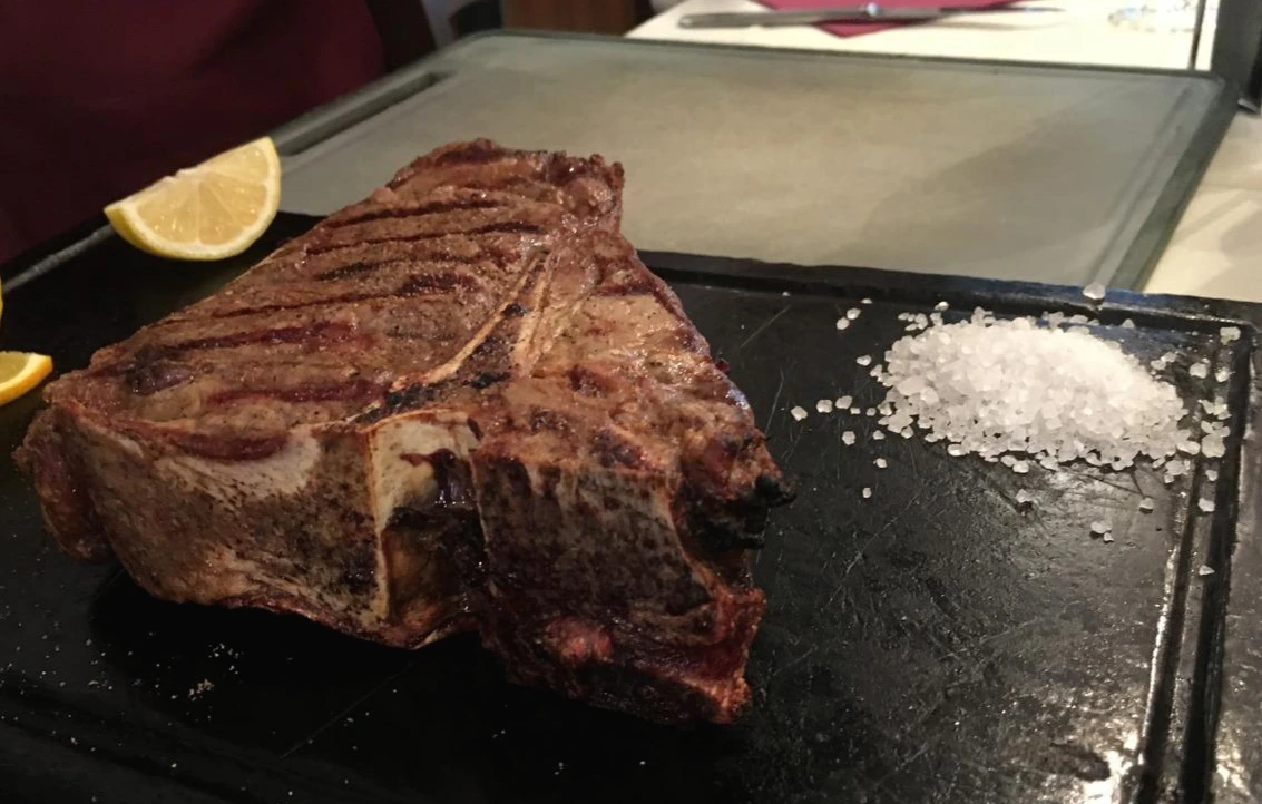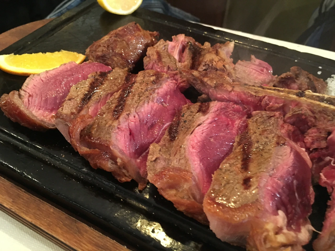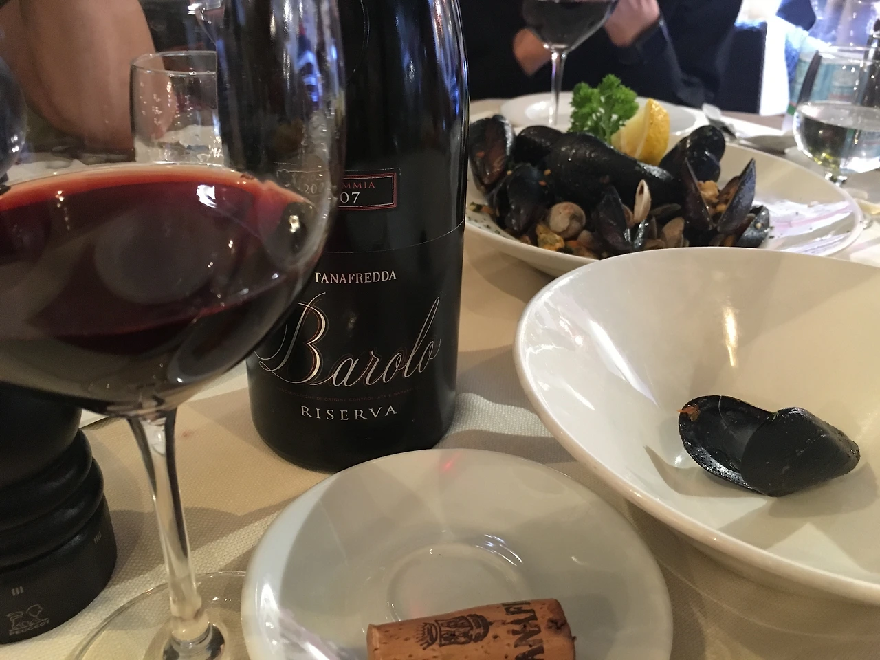 오늘의 점심은 자유시간 중에 알아서 먹는 자유식이었다. 뭘 먹고 싶으냐는 가이드님의 물음에, 당연히 고기라고 대답했더니 스테이크가 맛있는 곳이라며 레스토랑을 하나 알려주셨다. 가족끼리 하는 식사에 신이 나서 이것저것 시켜서 먹었다. 자유식이니만큼 먹고 싶은 것을 먹으면 된다는 생각에 이탈리아에 오면 꼭 먹어 보고 싶은 치오피노를 찾았는데 그런 음식은 없었다. (나중에 알고 봤더니 내가 잘못 알고 있던 것이었지만; 치오피노 이야기) 아쉬운 대로 해산물 몇 개와 스테이크 큰 것 그리고 바롤로 와인을 주문했다. 그리고 후식으로는 리몬첼로 한잔과 에스프레소를 마셨다. 정말 만족스러운 식사였다.